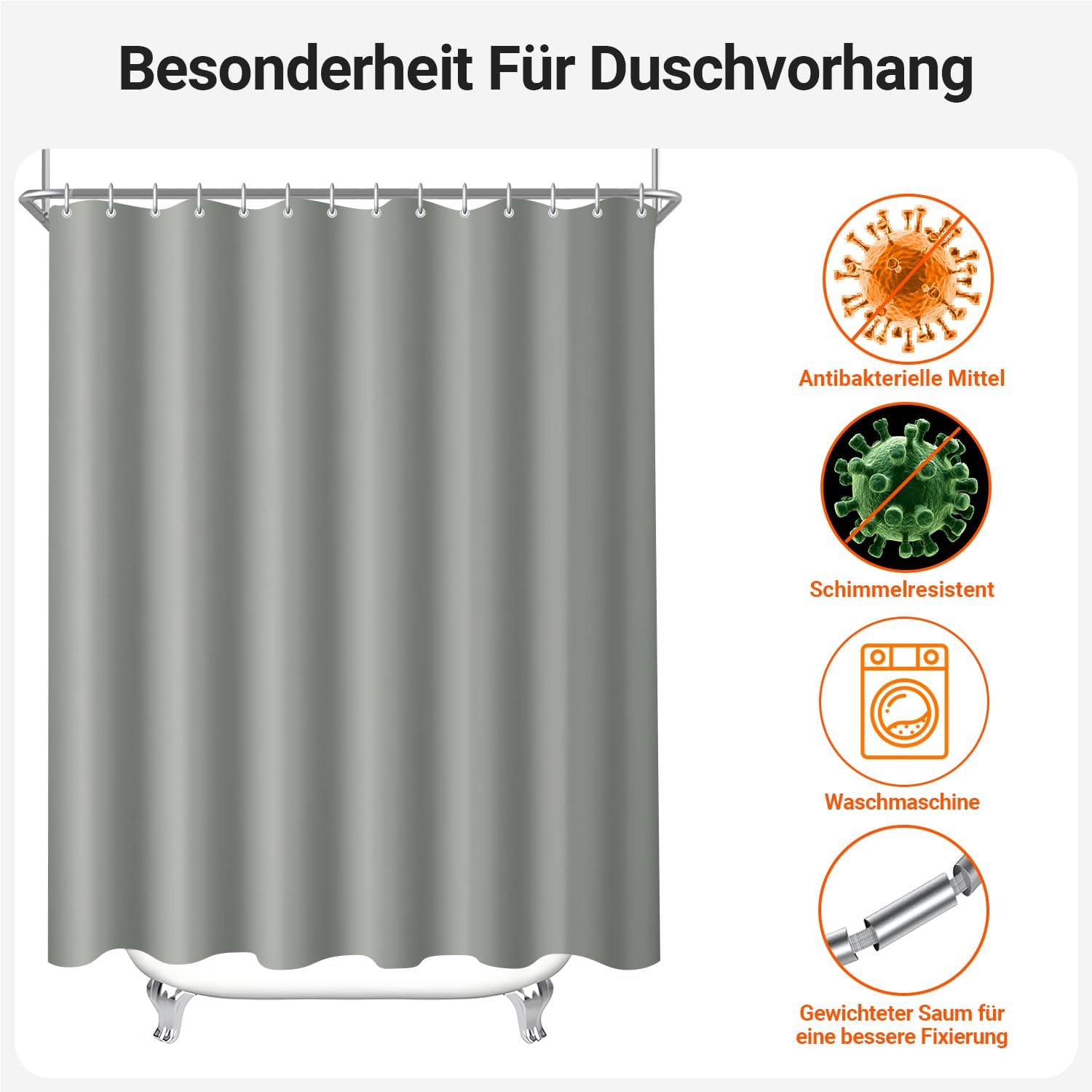 • Лесен монтаж: Тази завеса за душ е снабдена с 12 пластмасови кукички, включените кукички позволяват лесно окачване на тази завеса за баня. Долен подгъв с тежести: Допълнителен шев с надеждно закрепен подгъв в долната част. Включете струята под високо налягане. Предотвратете залепването на завесата за баня по тялото ви, когато се къпете.