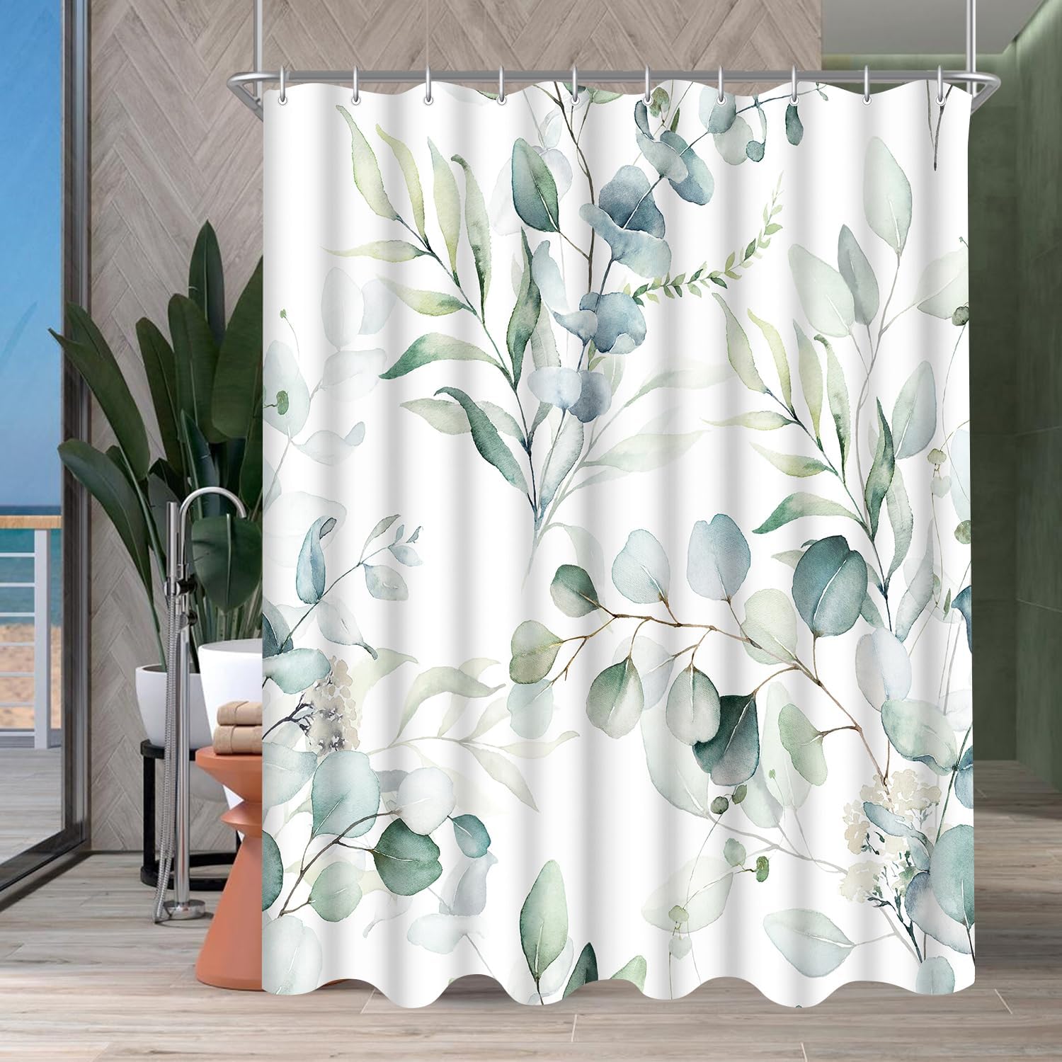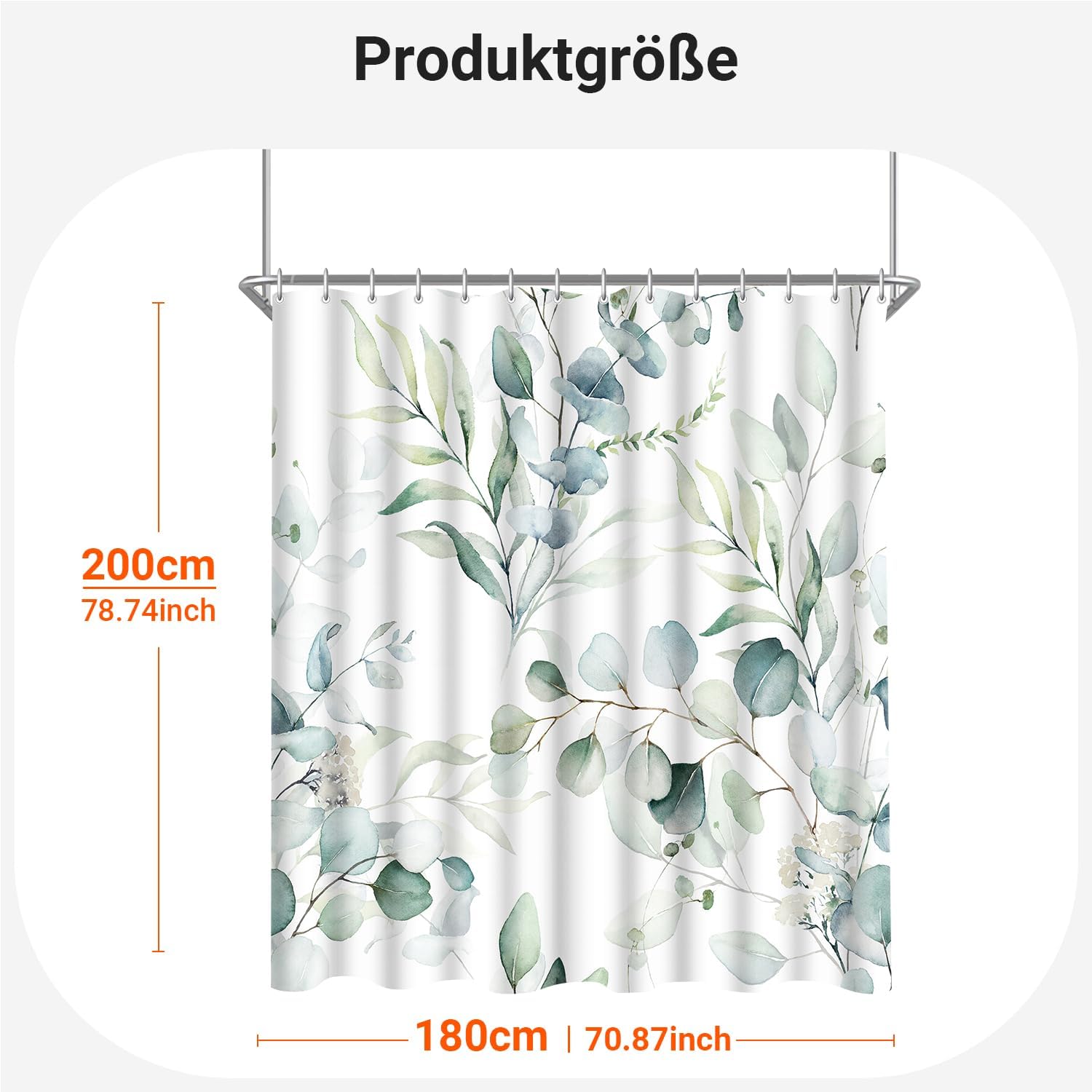Завеса за душ 180 x 200 см, листо, утежнен подгъв, против мухъл, текстил, водоотблъскваща, переща се полиестерна завеса за баня с 12 капси и халки за душ, за баня, вана