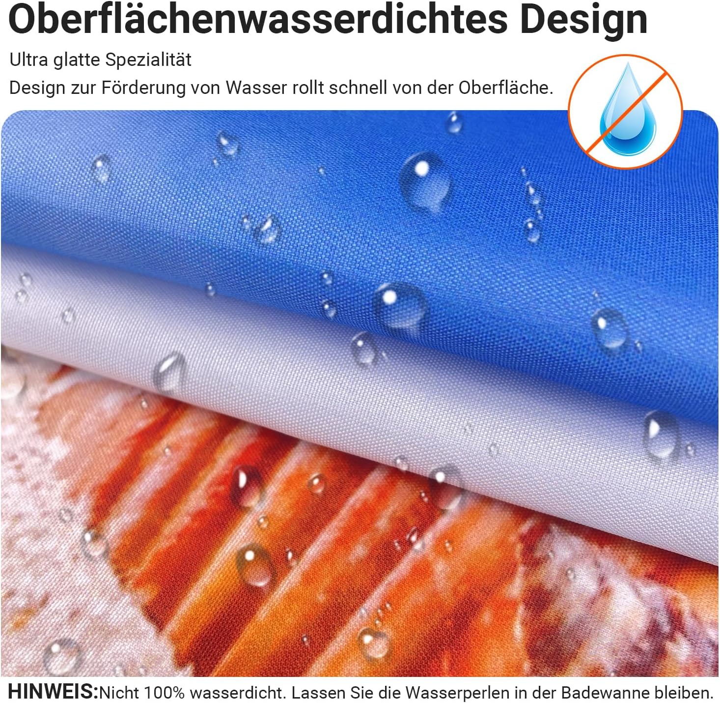 • Противомушълно и водоустойчиво покритие: Ултрагладък специален дизайн, създаден да устои на вода и да насърчава образуването на водни капчици, водата може лесно да се образува върху завесата за душ. За да предотвратите образуването на мухъл, уверете се, че водните капчици остават във ваната. Не е 100% водоустойчиво.