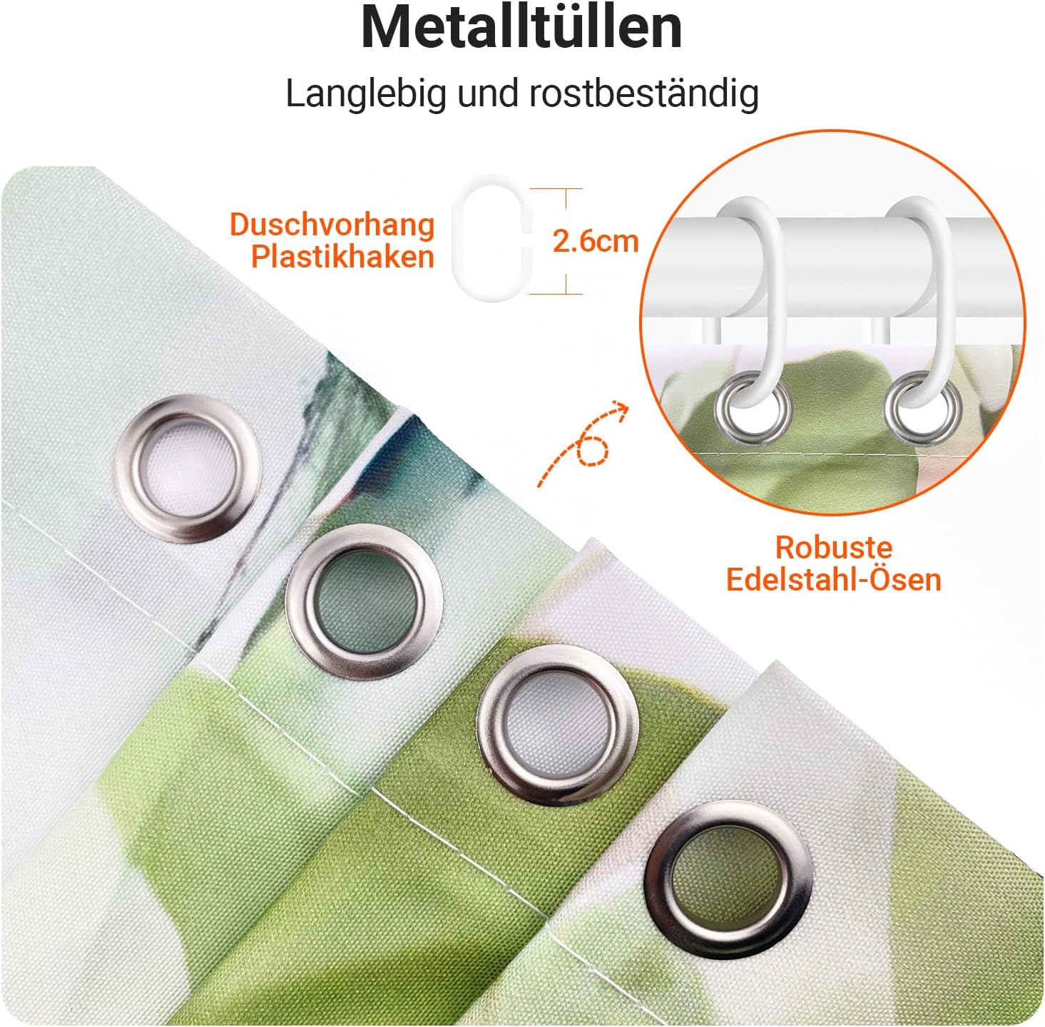 • Лесен монтаж: Тази завеса за душ е снабдена с 12 пластмасови кукички, включените кукички позволяват лесно окачване на тази завеса за баня. Долен подгъв с тежести: Допълнителен шев с надеждно закрепен подгъв в долната част. Включете струята под високо налягане. Предотвратете залепването на завесата за баня по тялото ви, когато се къпете.