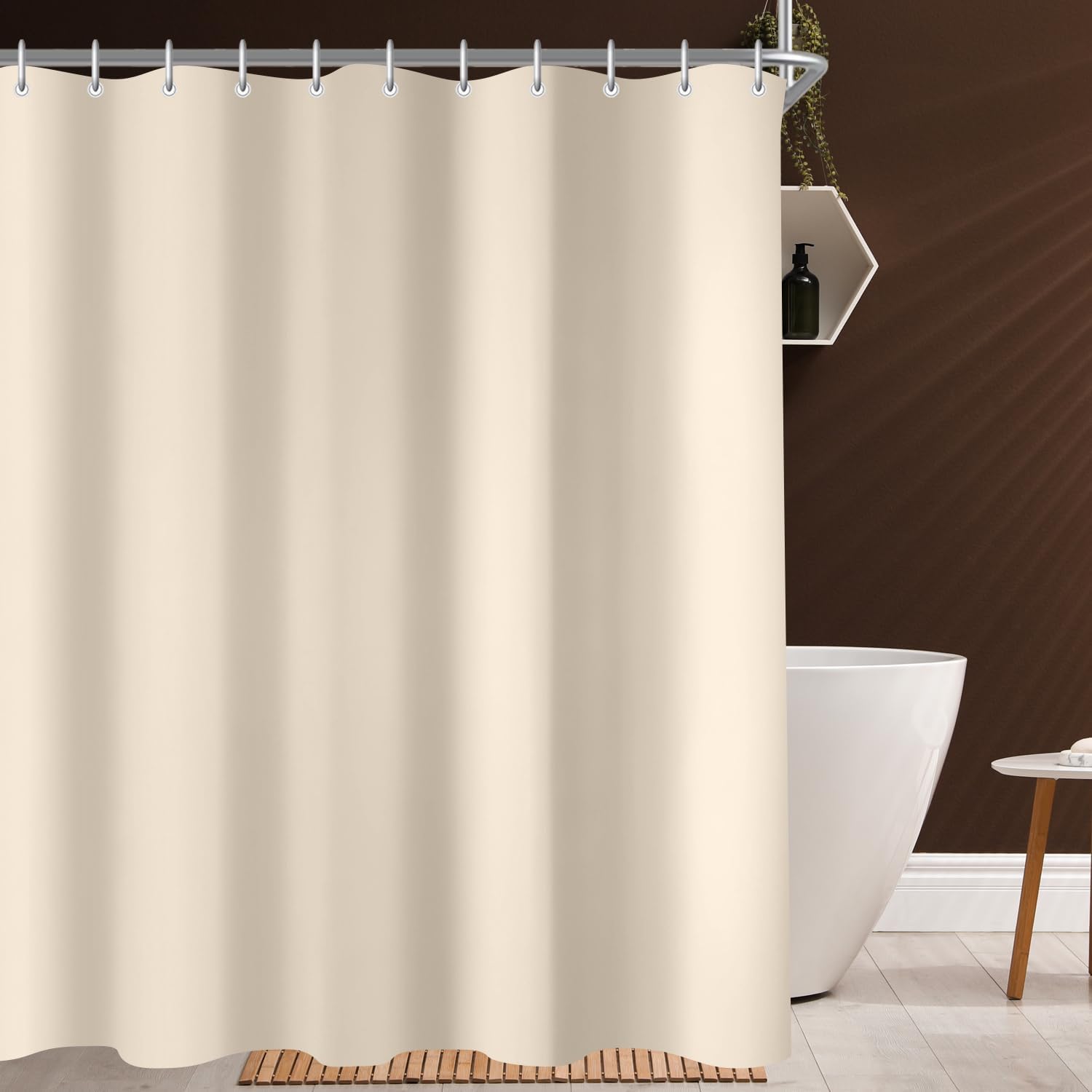Завеса за душ, 190 x 160 см, бежова, с утежнен подгъв, текстил против мухъл, водоотблъскващ, полиестерна материя, която може да се пере, завеса за баня, вана с 12 халки за завеса за душ