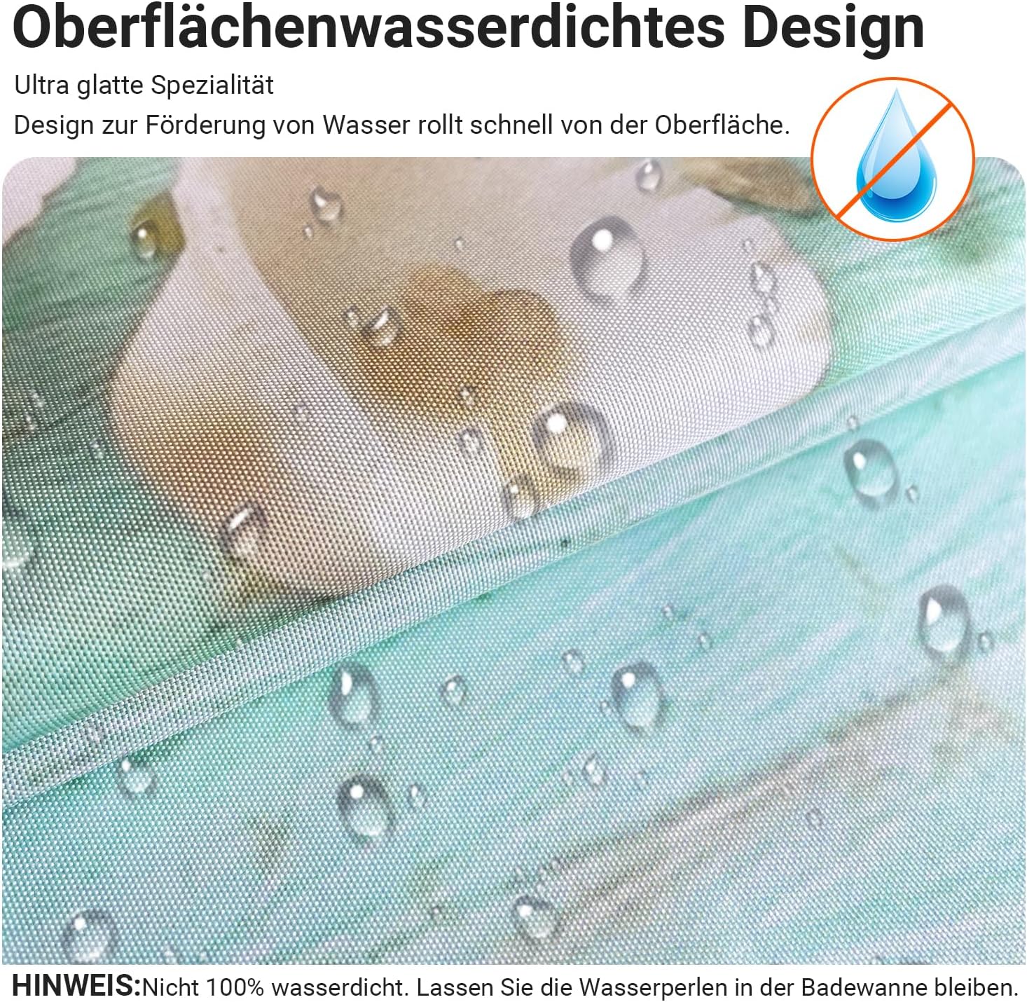 • Лесен монтаж: Тази завеса за душ е снабдена с 12 пластмасови кукички, включените кукички позволяват лесно окачване на тази завеса за баня. Долен подгъв с тежести: Допълнителен шев с надеждно закрепен подгъв в долната част. Включете струята под високо налягане. Предотвратете залепването на завесата за баня по тялото ви, когато се къпете.