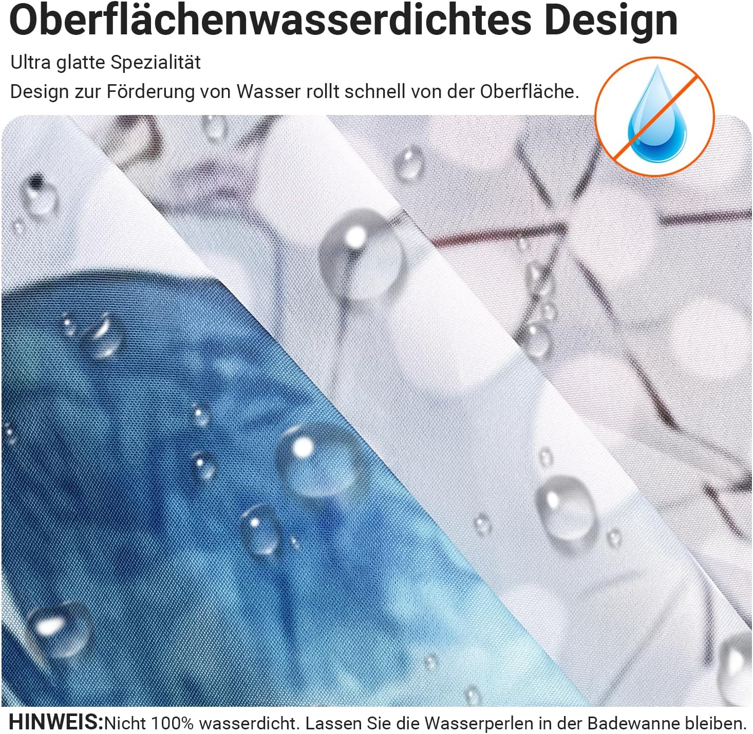 • Лесен монтаж: Тази завеса за душ е снабдена с 12 пластмасови кукички, включените кукички позволяват лесно окачване на тази завеса за баня. Долен подгъв с тежести: Допълнителен шев с надеждно закрепен подгъв в долната част. Включете струята под високо налягане. Предотвратете залепването на завесата за баня по тялото ви, когато се къпете.