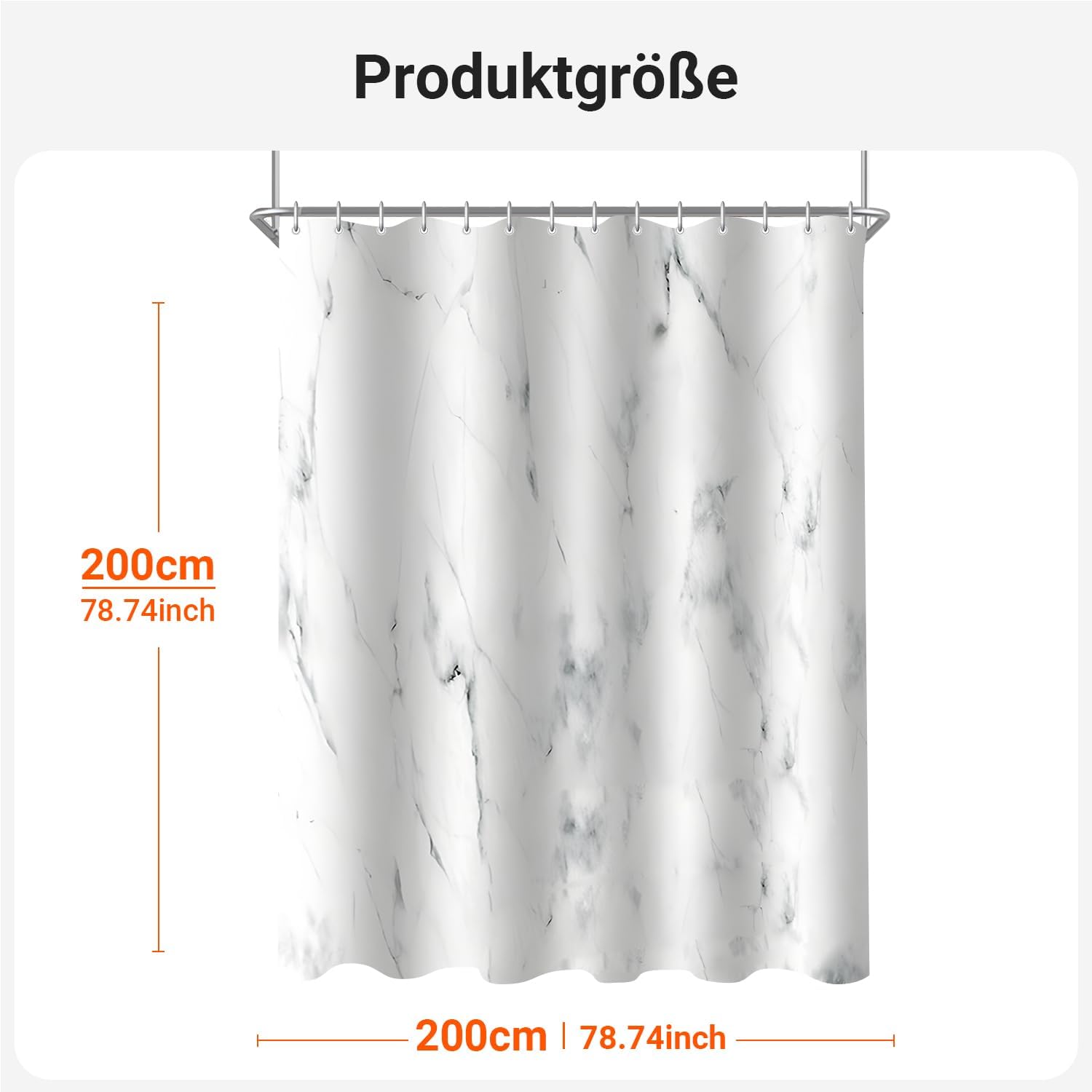 Завеса за душ, 200 x 200 см, мрамор, утежнен подгъв, текстил против мухъл, водоустойчива, переща се полиестерна материя, завеса за баня с 12 отвора и халки за душ, за баня, вана