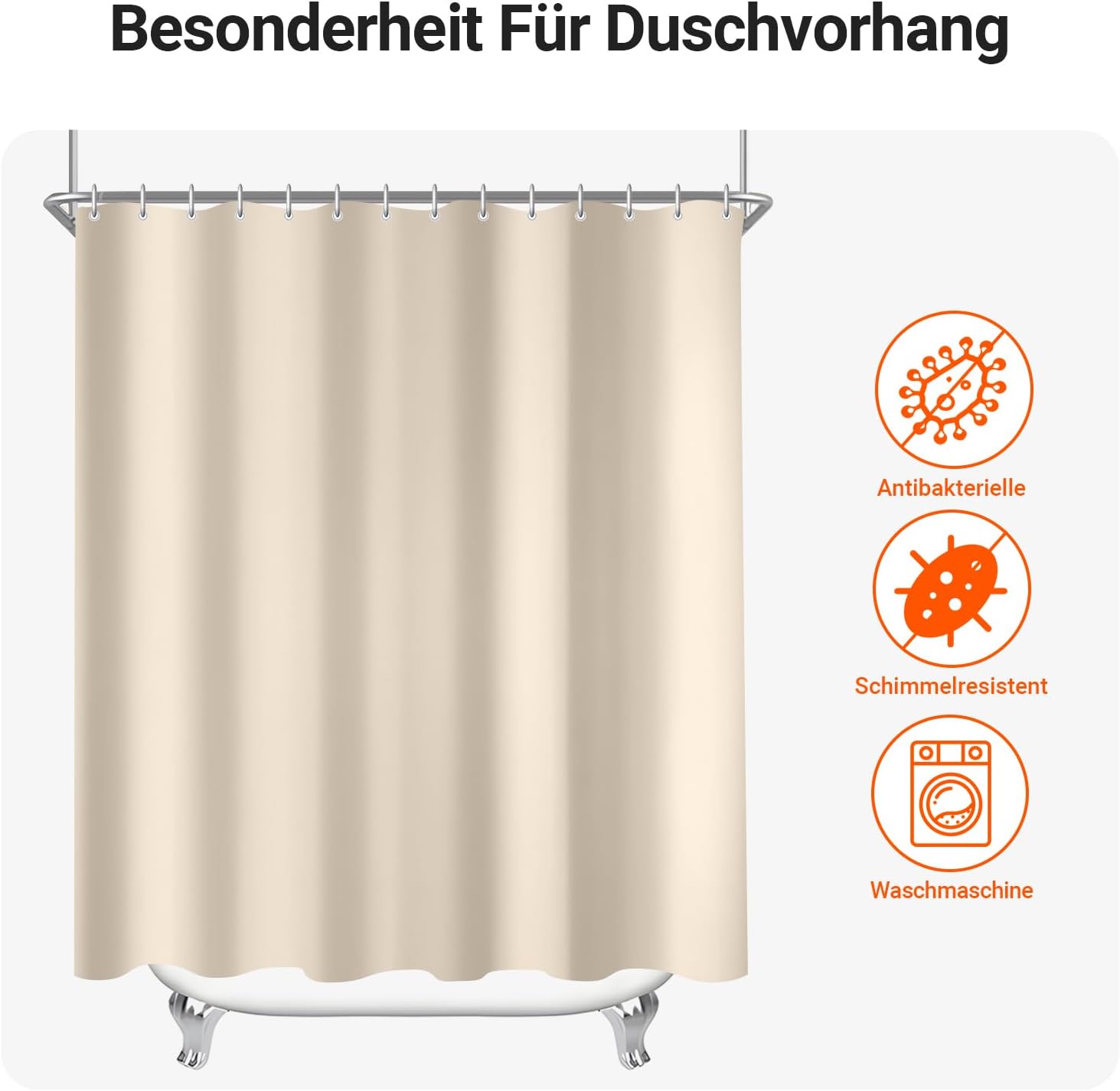 • Лесен монтаж: Тази завеса за душ е снабдена с 12 пластмасови кукички, включените кукички позволяват лесно окачване на тази завеса за баня. Долен подгъв с тежести: Допълнителен шев с надеждно закрепен подгъв в долната част. Включете струята под високо налягане. Предотвратете залепването на завесата за баня по тялото ви, когато се къпете.