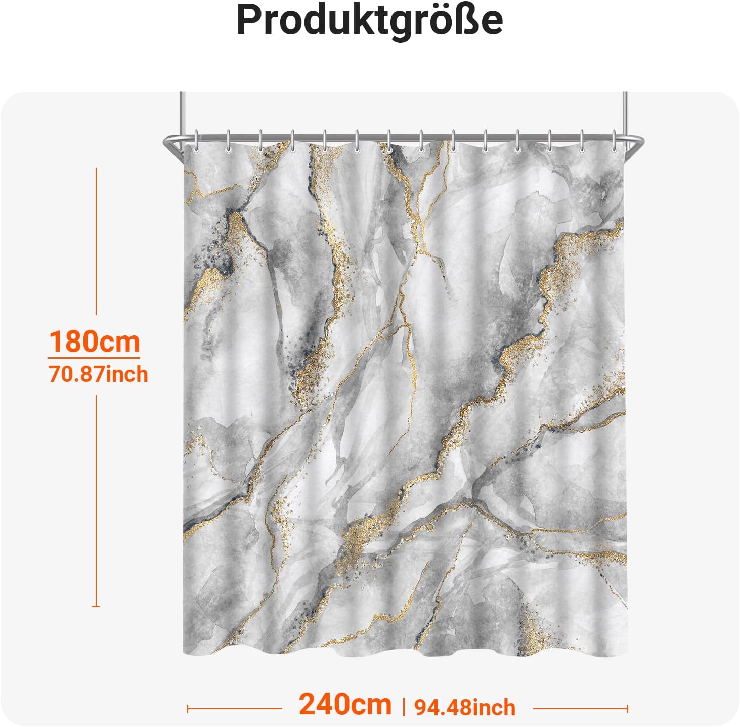 Завеса за душ, 240 x 180 см, мрамор, утежнен подгъв, текстил против мухъл, водоотблъскваща, переща се полиестерна завеса за баня с 16 отвора и халки за душ, за баня, вана