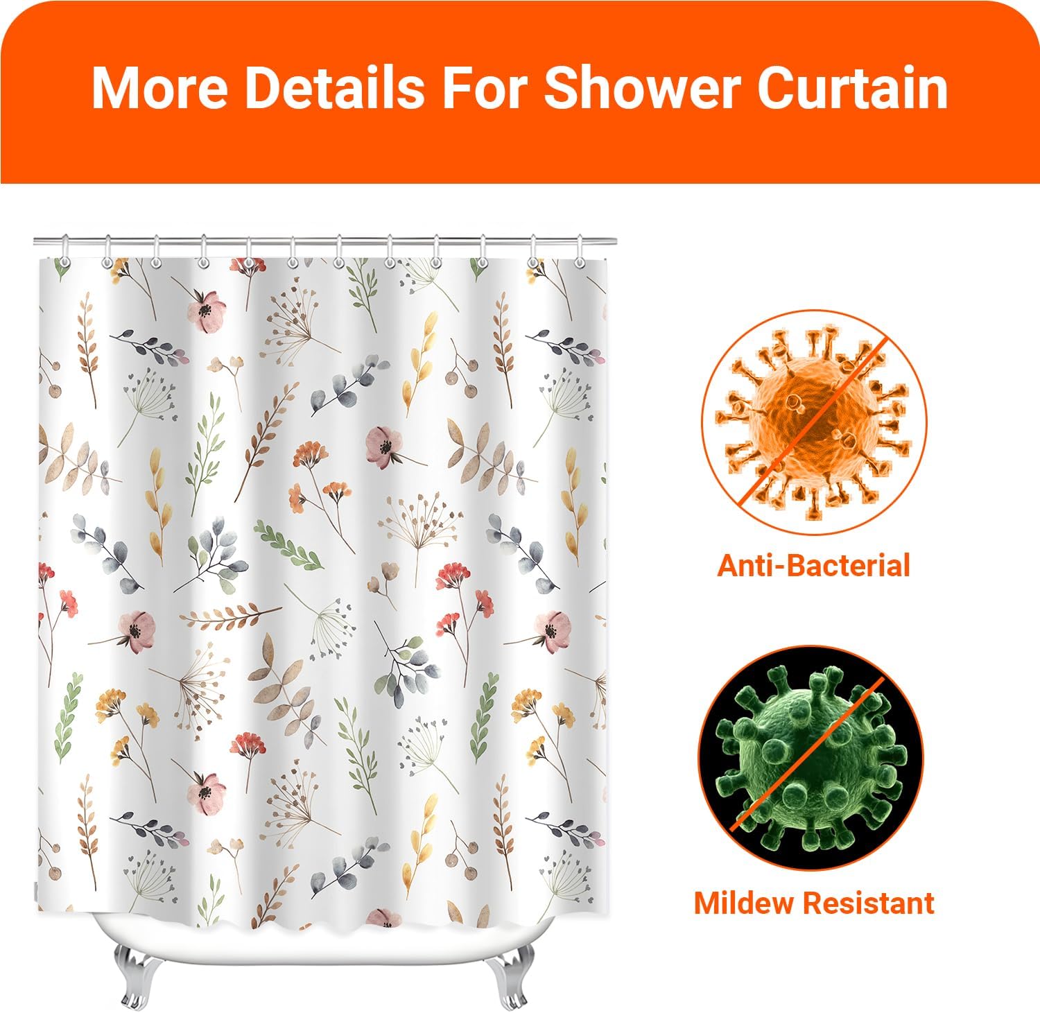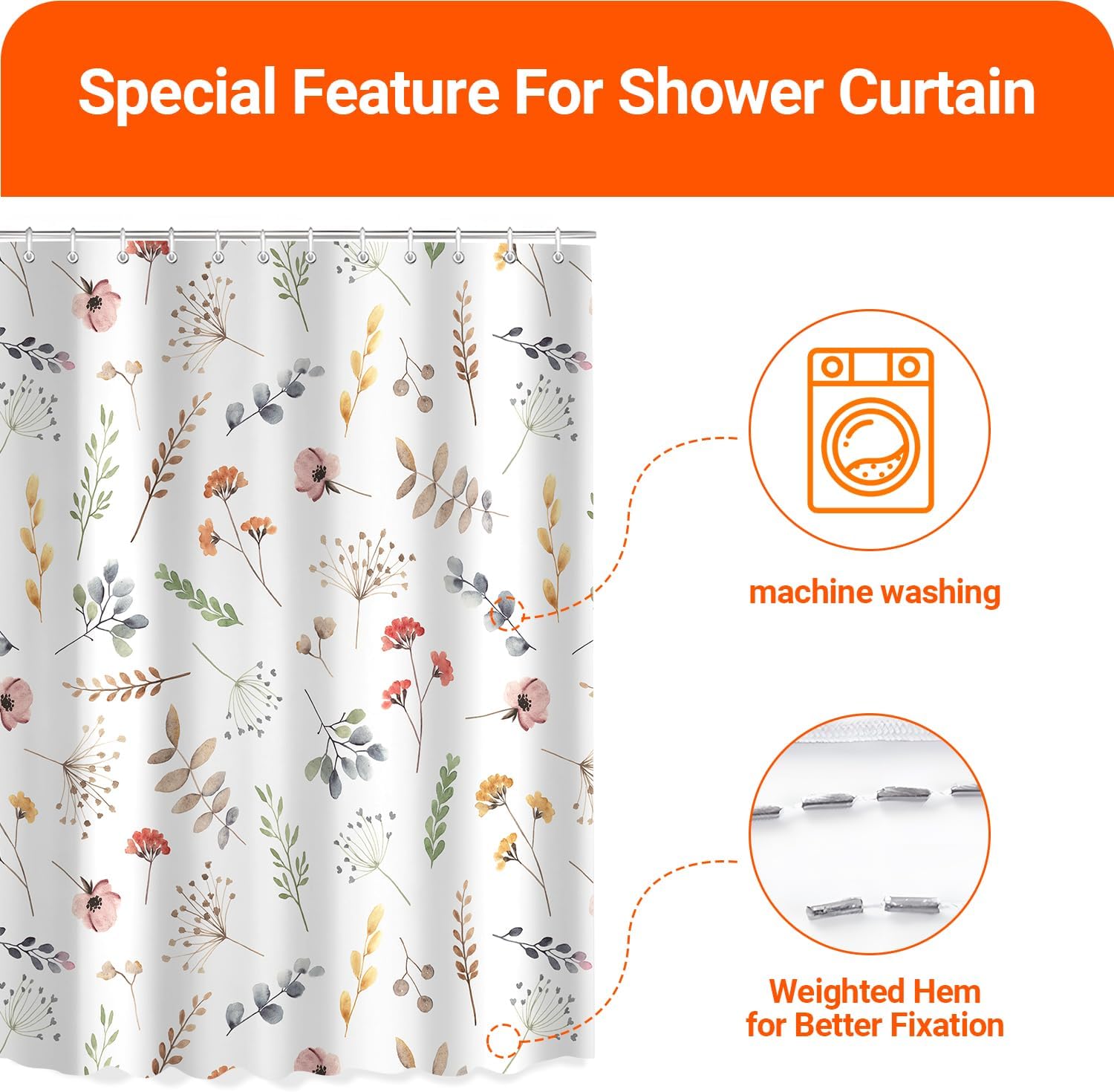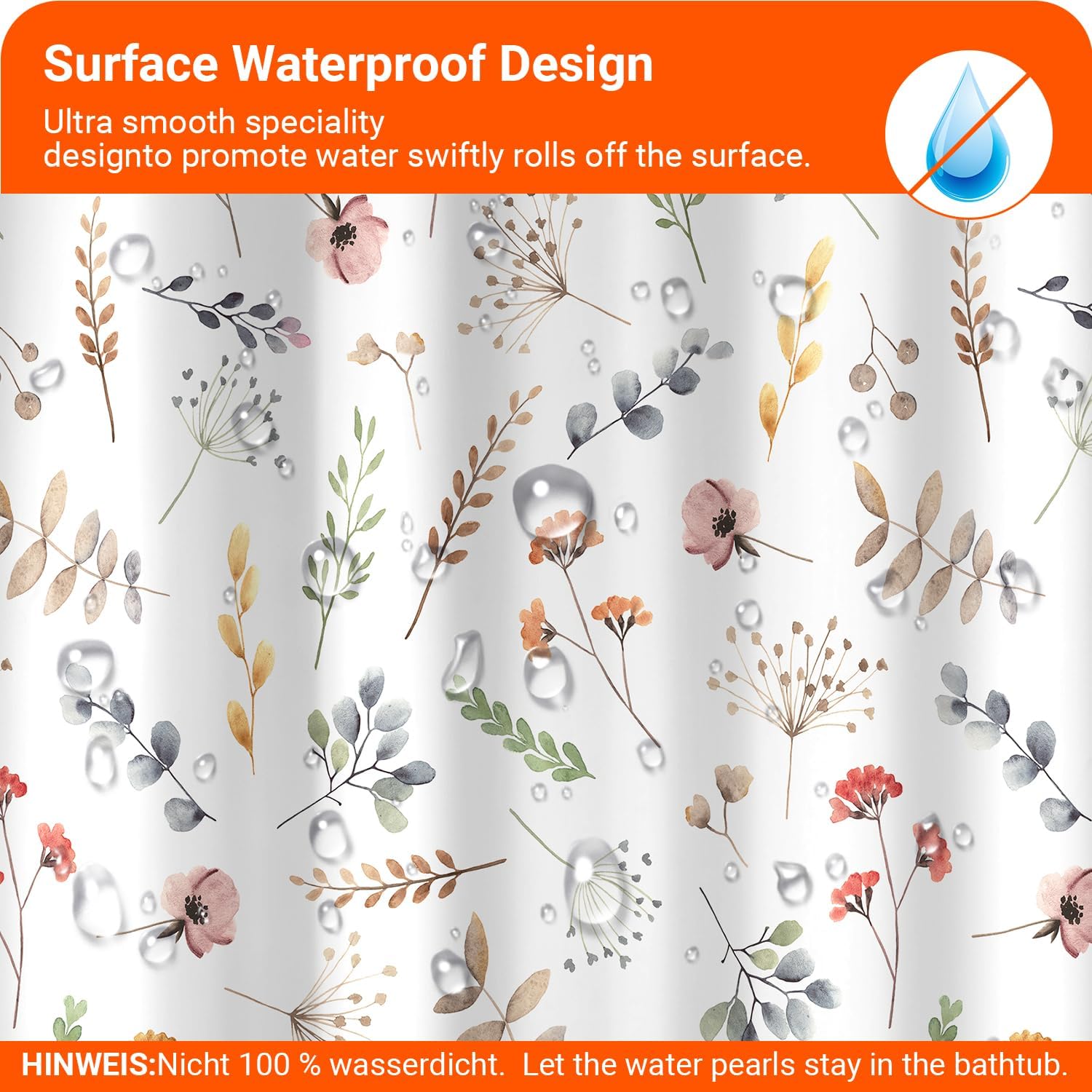 • Противомушълно и водоустойчиво покритие: Ултрагладък специален дизайн, създаден да устои на вода и да насърчава образуването на водни капчици, водата може лесно да се образува върху завесата за душ. За да предотвратите образуването на мухъл, уверете се, че водните капчици остават във ваната. Не е 100% водоустойчиво.