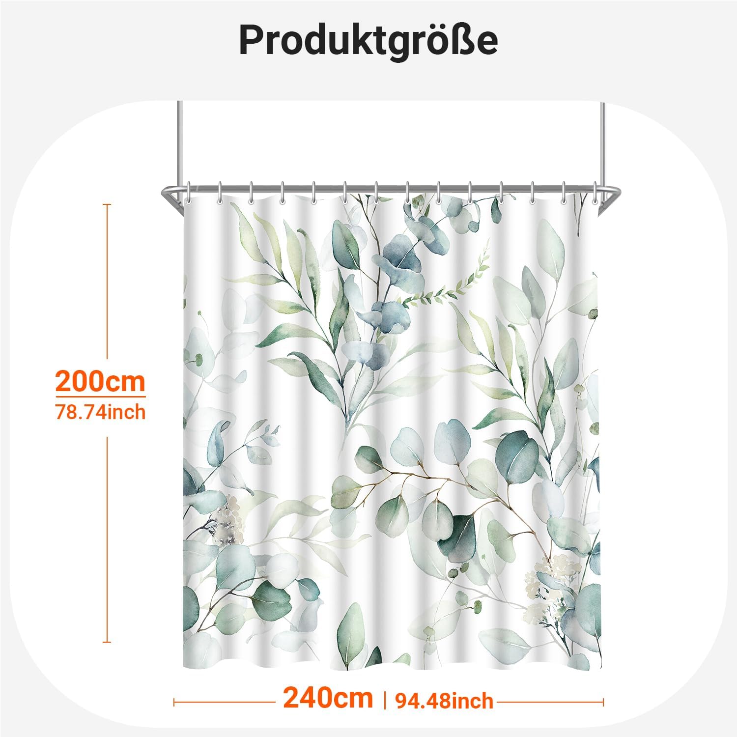 Завеса за душ 240 x 200 см, листенца, утежнен подгъв, против мухъл, водоотблъскваща, переща се полиестерна завеса за баня с 16 капси и халки за душ за баня, вана