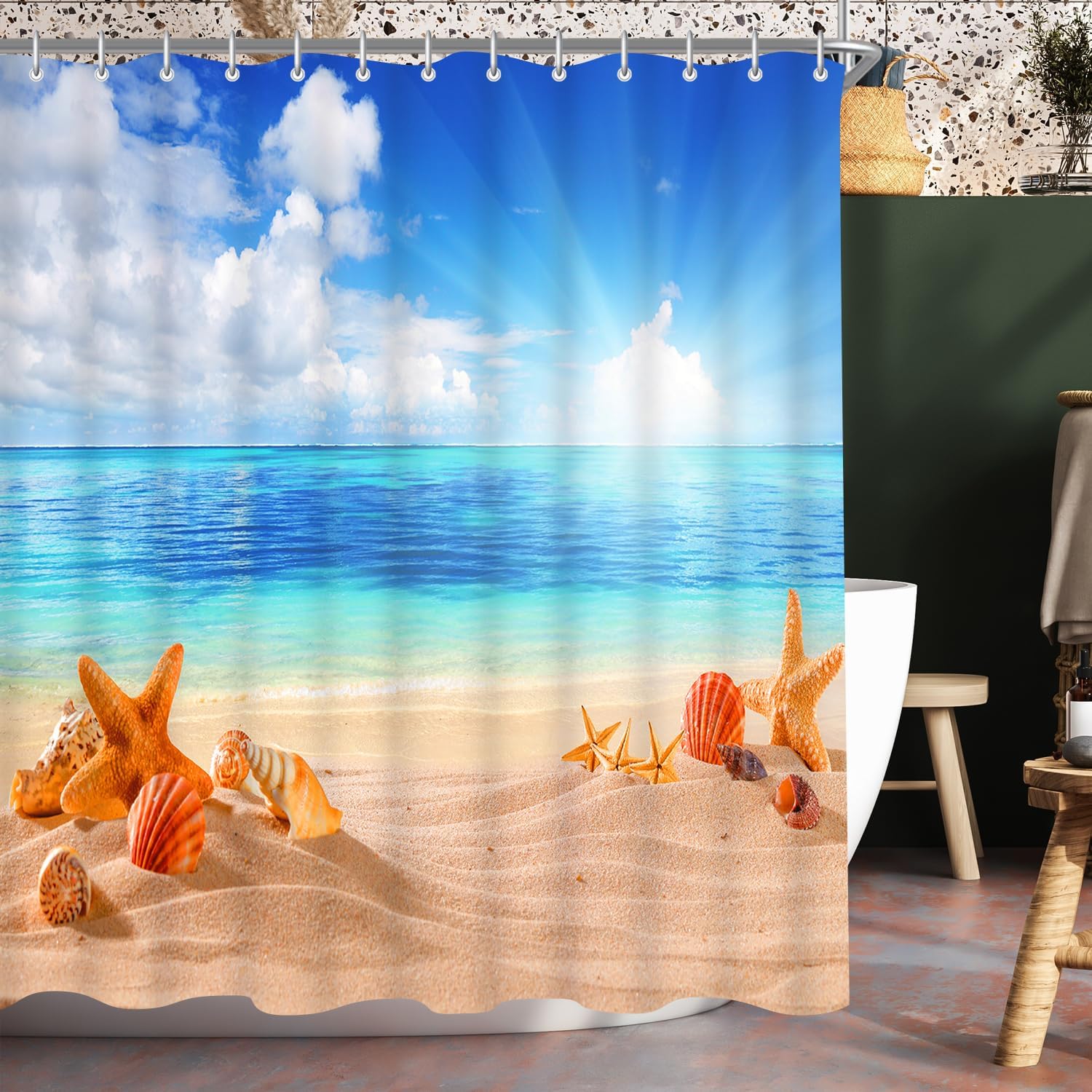 • Лесен монтаж: Тази завеса за душ е снабдена с 12 пластмасови кукички, включените кукички позволяват лесно окачване на тази завеса за баня. Долен подгъв с тежести: Допълнителен шев с надеждно закрепен подгъв в долната част. Включете струята под високо налягане. Предотвратете залепването на завесата за баня по тялото ви, когато се къпете.