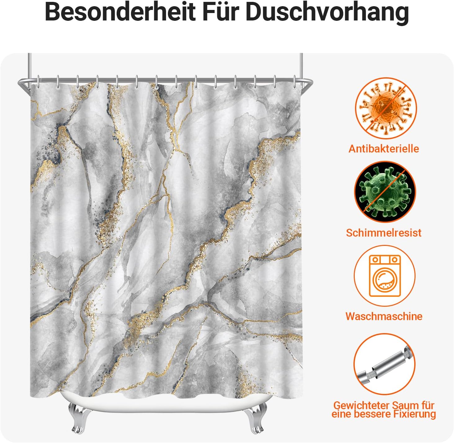 • Лесен монтаж: Тази завеса за душ е снабдена с 12 пластмасови кукички, включените кукички позволяват лесно окачване на тази завеса за баня. Долен подгъв с тежести: Допълнителен шев с надеждно закрепен подгъв в долната част. Включете струята под високо налягане. Предотвратете залепването на завесата за баня по тялото ви, когато се къпете.