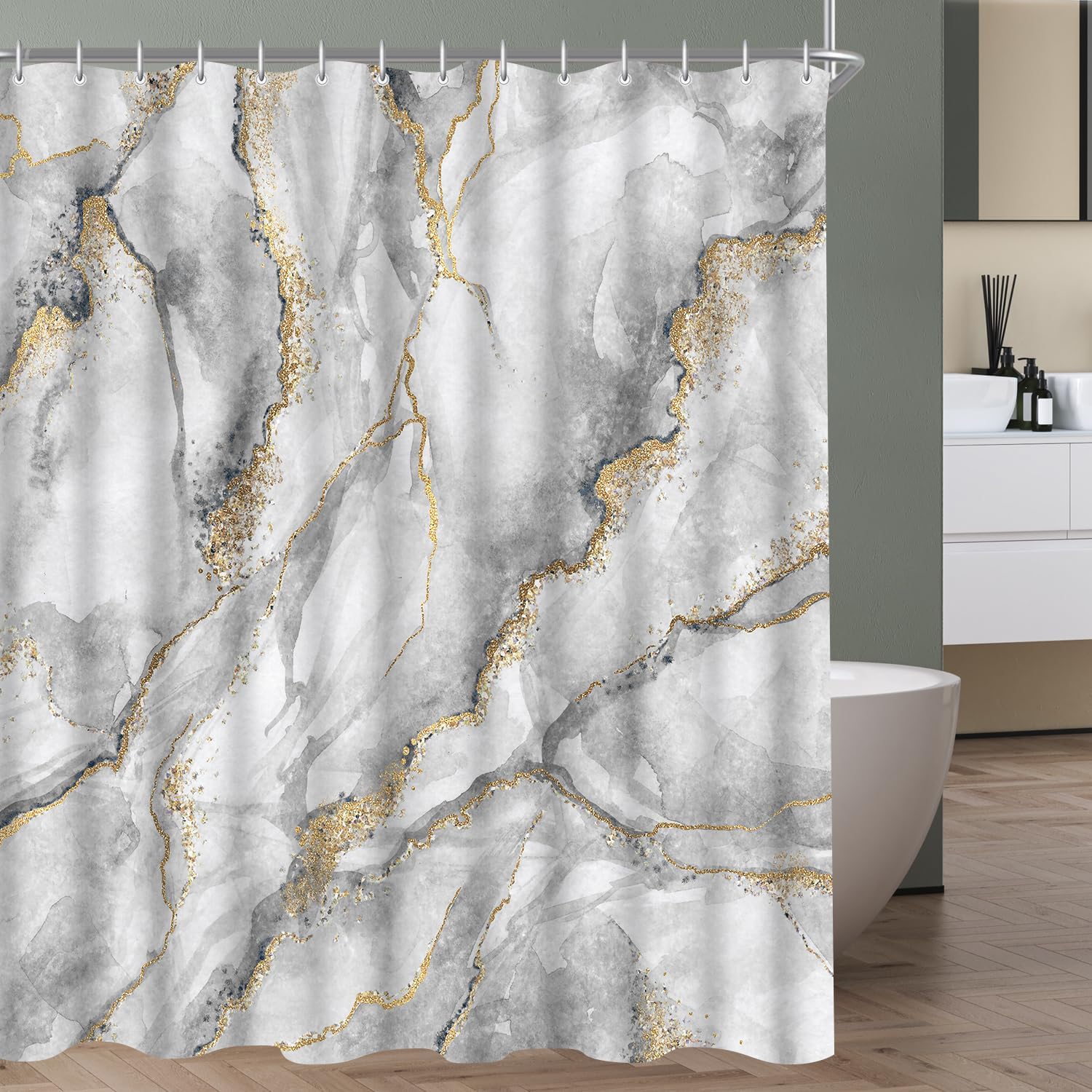 Завеса за душ, 240 x 200 см, мрамор, утежнен подгъв, текстил против мухъл, водоотблъскваща, переща се полиестерна завеса за баня с 16 отвора и халки за душ, за баня, вана