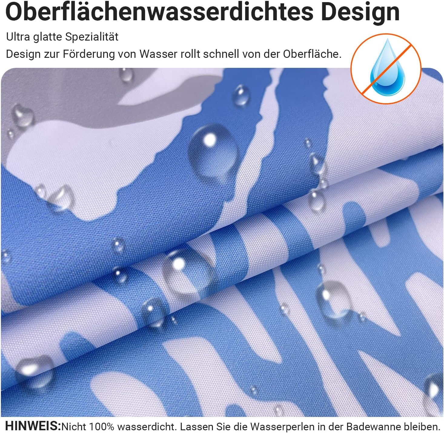 • Противомушълно и водоустойчиво покритие: Ултрагладък специален дизайн, създаден да устои на вода и да насърчава образуването на водни капчици, водата може лесно да се образува върху завесата за душ. За да предотвратите образуването на мухъл, уверете се, че водните капчици остават във ваната. Не е 100% водоустойчиво.