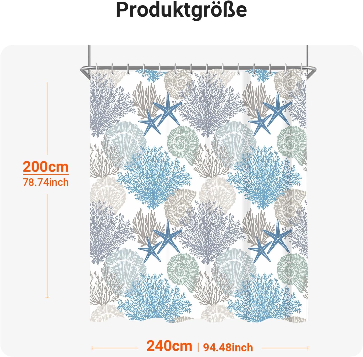 Завеса за душ 240 x 200 см, Подводни водорасли, Текстил против мухъл, Утежнен подгъв, Водоотблъскваща, Перещи се полиестерни завеси за баня, 16 капси и халки за завеса за душ за баня, Вана