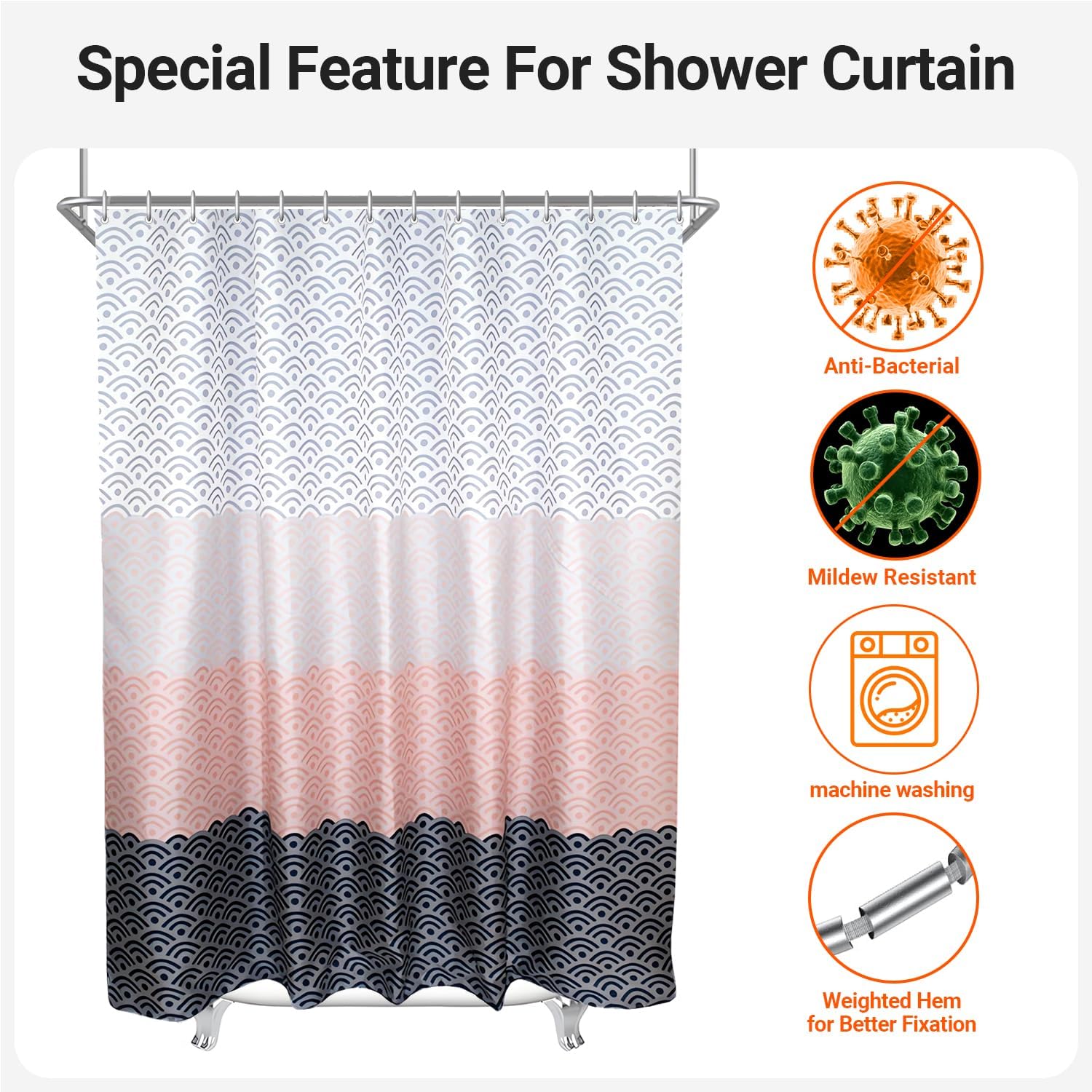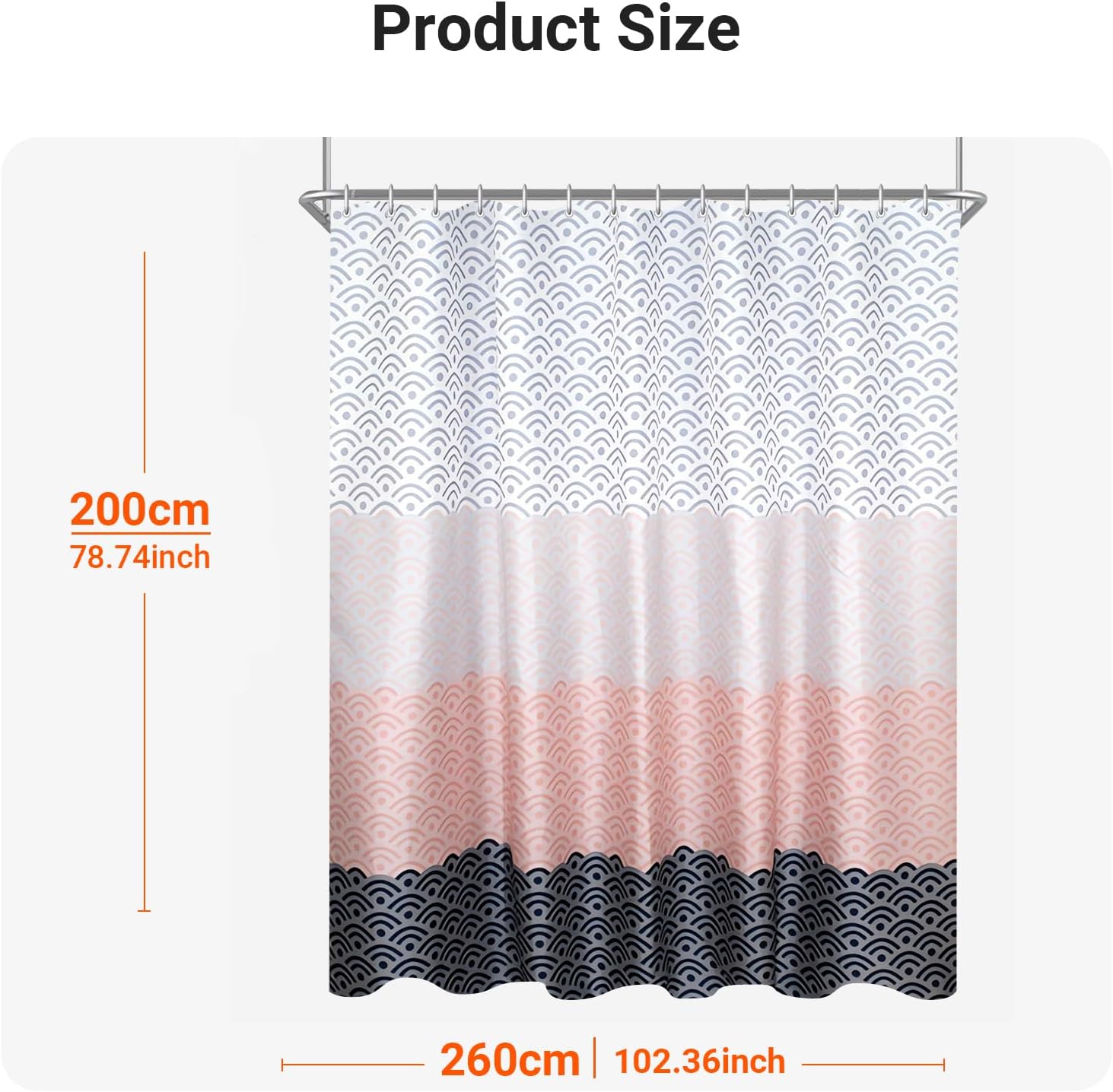 • Лесен монтаж: Тази завеса за душ е снабдена с 12 пластмасови кукички, включените кукички позволяват лесно окачване на тази завеса за баня. Долен подгъв с тежести: Допълнителен шев с надеждно закрепен подгъв в долната част. Включете струята под високо налягане. Предотвратете залепването на завесата за баня по тялото ви, когато се къпете.