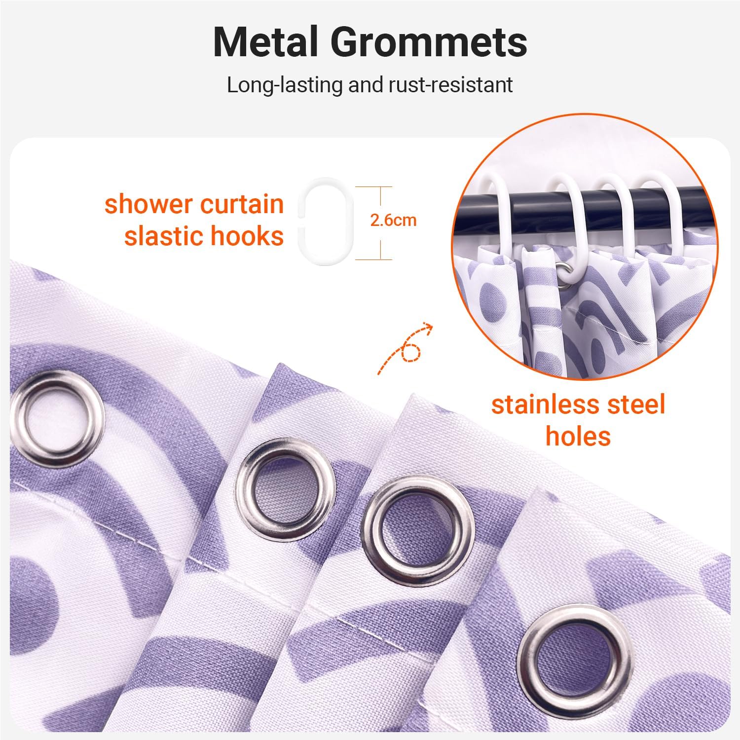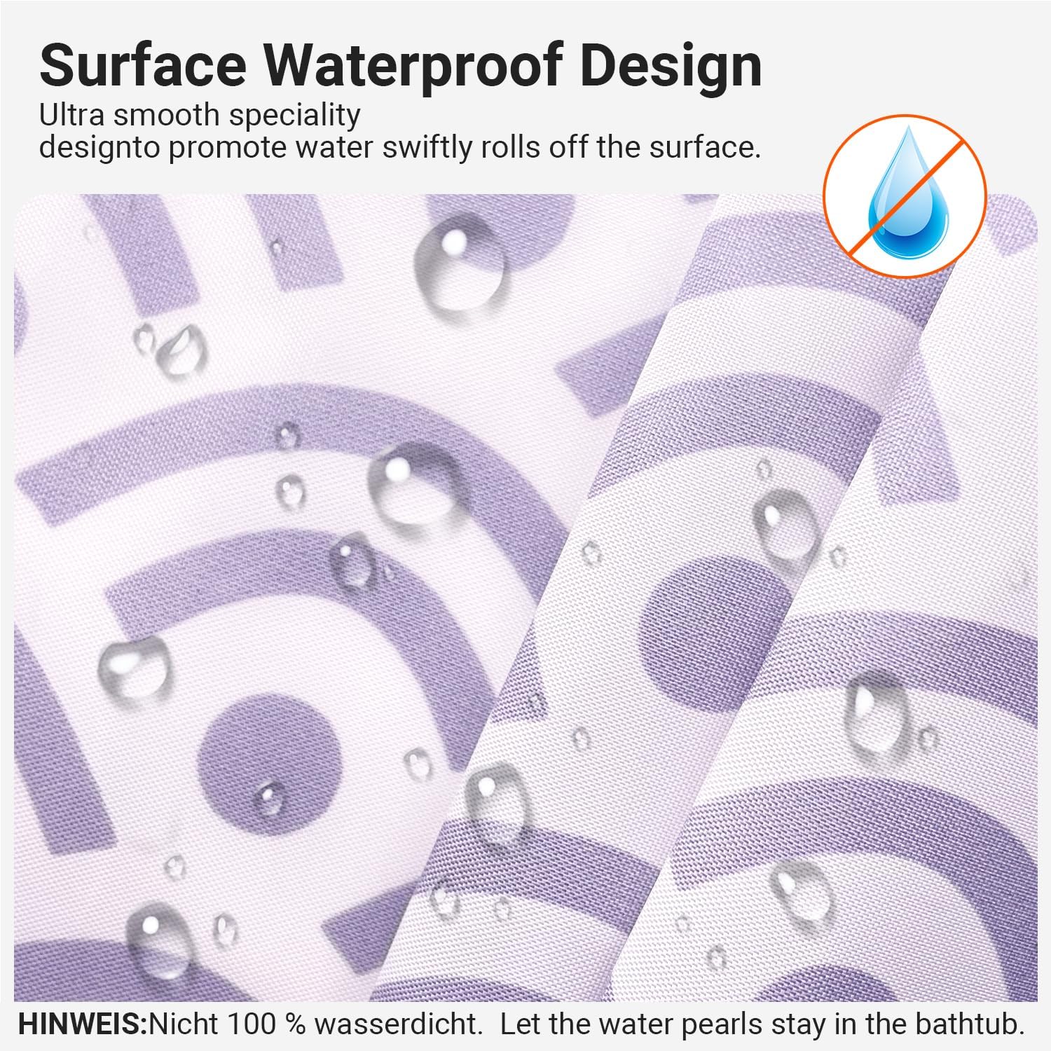• Противомушълно и водоустойчиво покритие: Ултрагладък специален дизайн, създаден да устои на вода и да насърчава образуването на водни капчици, водата може лесно да се образува върху завесата за душ. За да предотвратите образуването на мухъл, уверете се, че водните капчици остават във ваната. Не е 100% водоустойчиво.