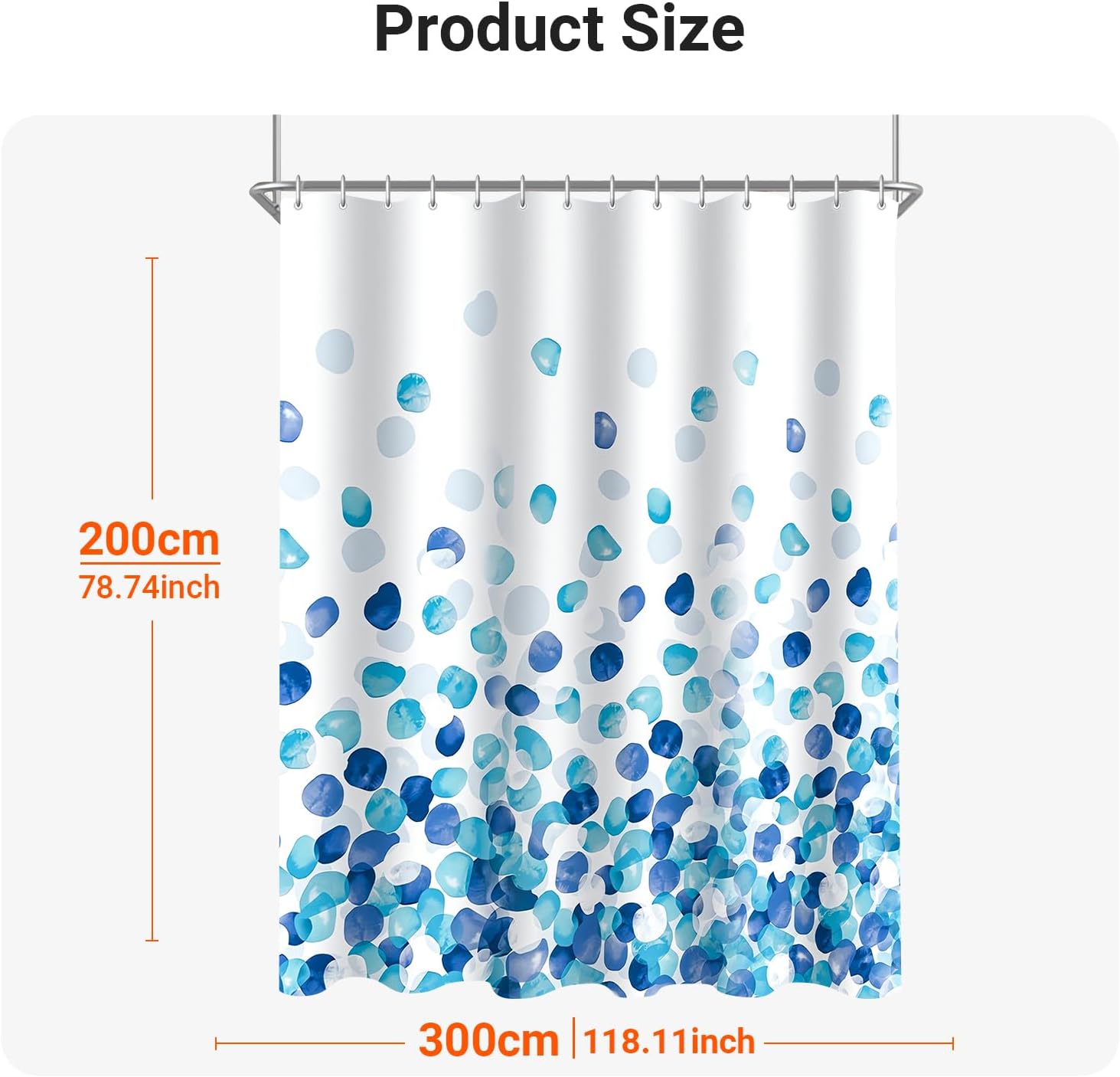 • Лесен монтаж: Тази завеса за душ е снабдена с 12 пластмасови кукички, включените кукички позволяват лесно окачване на тази завеса за баня. Долен подгъв с тежести: Допълнителен шев с надеждно закрепен подгъв в долната част. Включете струята под високо налягане. Предотвратете залепването на завесата за баня по тялото ви, когато се къпете.