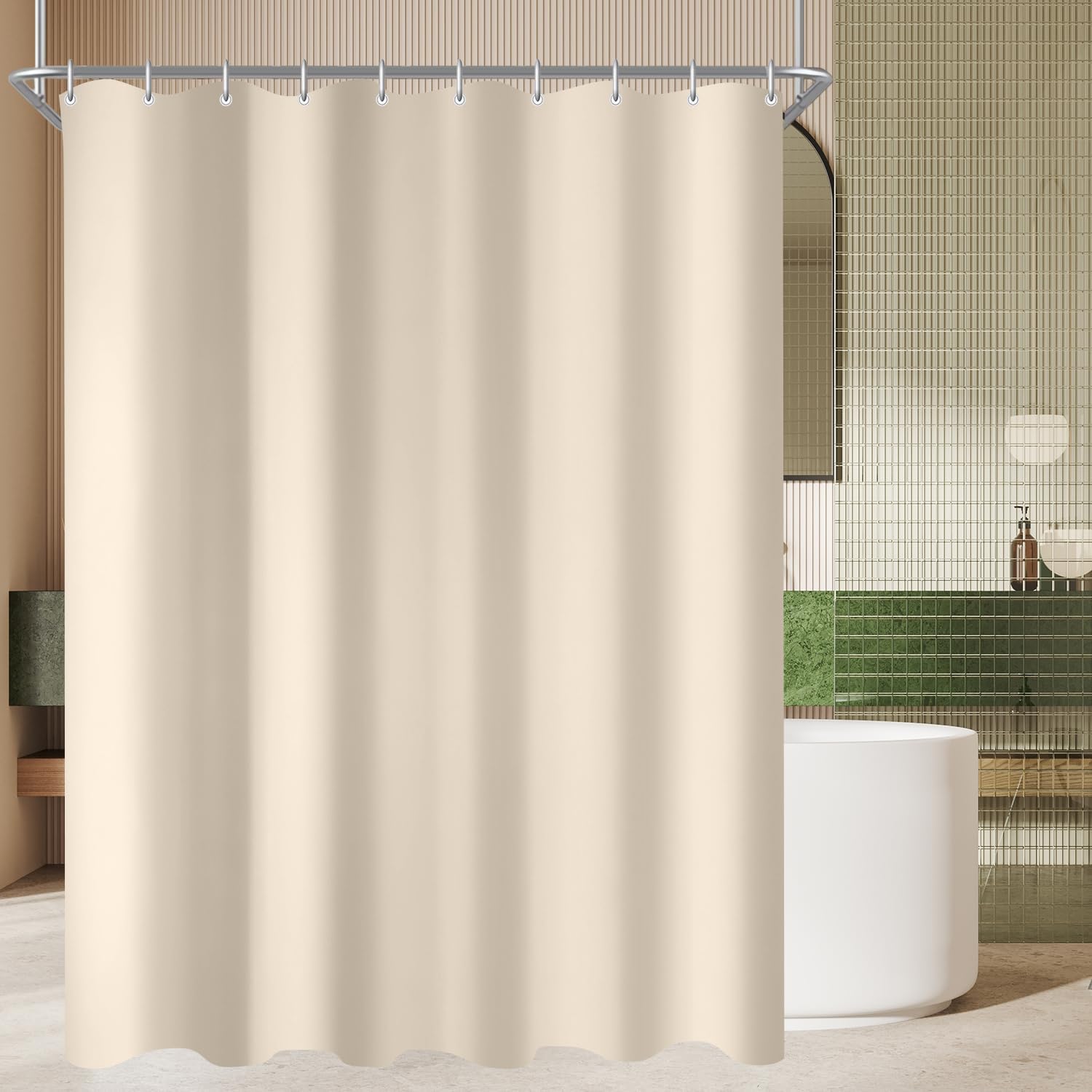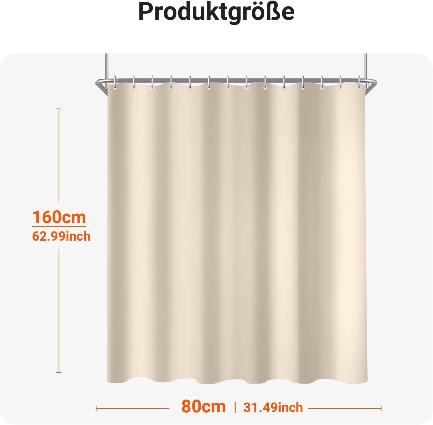 Завеса за душ, 80 x 160 см, бежова, утежнен подгъв, текстил против мухъл, водоотблъскващ, полиестерна материя, която може да се пере, завеса за баня, вана с 6 халки за завеса за душ