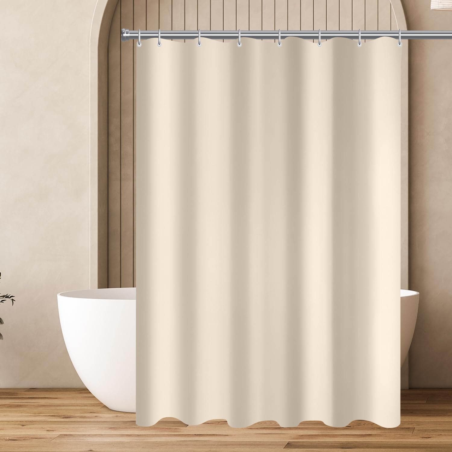 Завеса за душ, 80 x 180 см, бежова, утежнен подгъв, текстил против мухъл, водоотблъскващ, полиестерна материя, която може да се пере, вана с 8 халки за завеса за душ