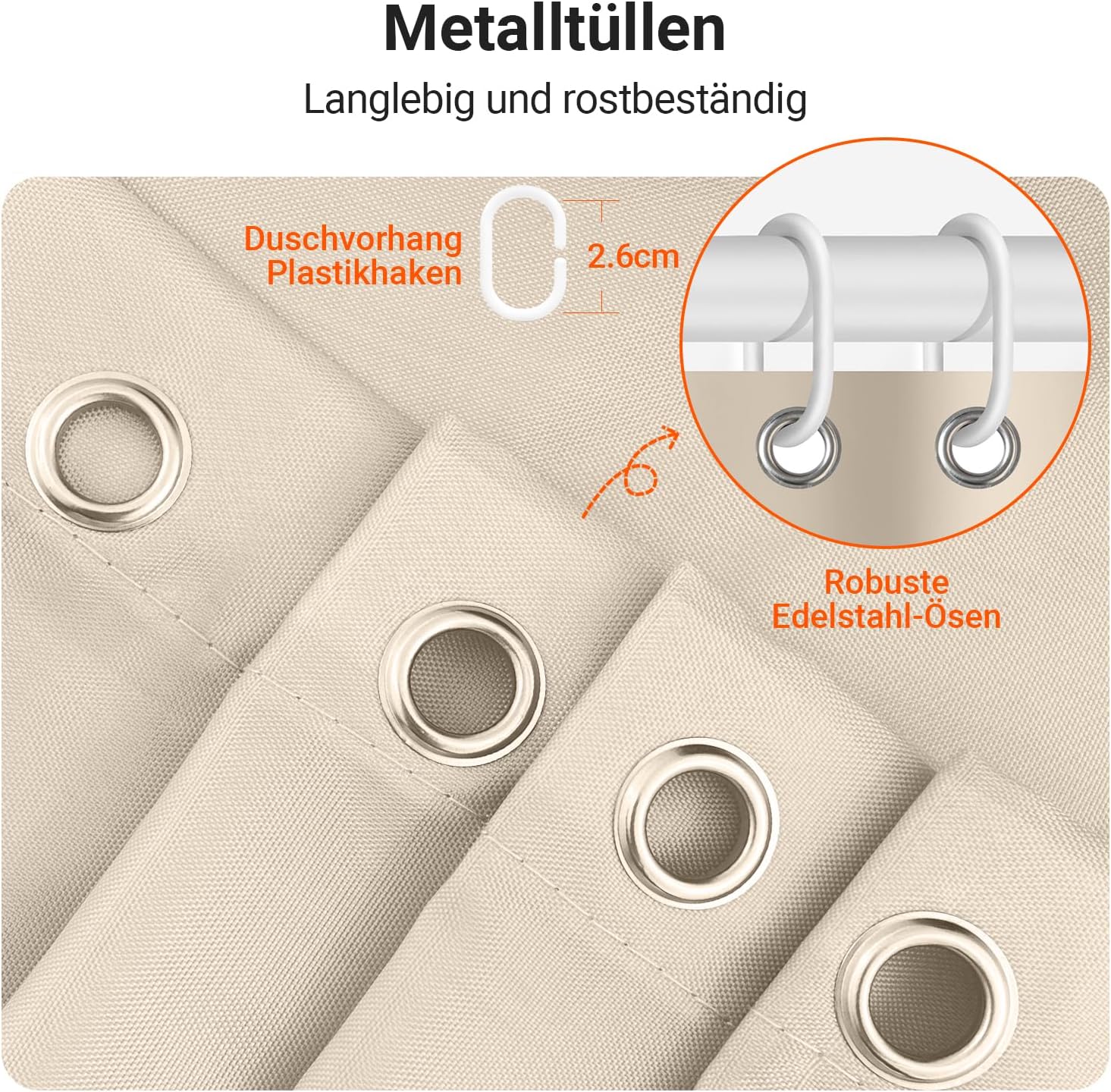 • Лесен монтаж: Тази завеса за душ е снабдена с 12 пластмасови кукички, включените кукички позволяват лесно окачване на тази завеса за баня. Долен подгъв с тежести: Допълнителен шев с надеждно закрепен подгъв в долната част. Включете струята под високо налягане. Предотвратете залепването на завесата за баня по тялото ви, когато се къпете.