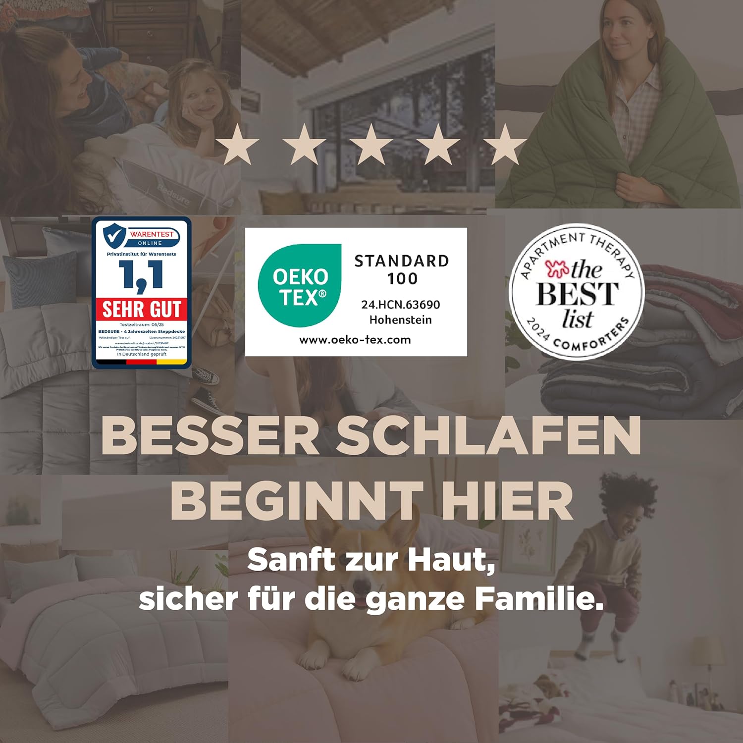 Микрофибърните завивки Bedsure с класически ръчни изработки създават стени между горния и долния слой и предотвратяват слепването или хлъзгането на пълнителите. Те осигуряват гладък вид и меко усещане за години напред. Старателно зашити, завивките са устойчиви на износване, устойчиви са на петна и имат добра устойчивост на свиване и набръчкване. Универсални, като самостоятелно завивка или като пълнеж за завивка, който да съответства на любимия ви калъф за завивка. Пълнеж от 300GSM пълен микрофибър, този пълнеж за завивка е чудесна алтернатива на конвенционалните пухени легла за чувствителни хора. Пухкава, божествена завивка, която диша и ви позволява да спите комфортно, когато живеете в горещ климат или спите потни. Нашата луксозна завивка ще ви покани на спокоен сън и ще повярвате, че наистина спите в облак нощ след нощ.