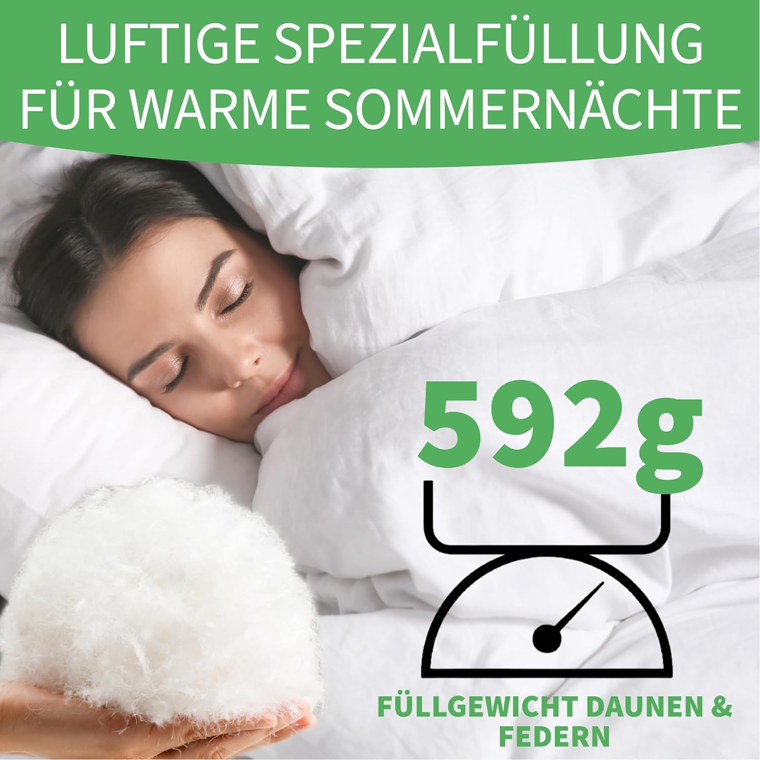 Завивка Welldora Comfort 220 x 240 см, лятна, 100% екстра меки пера и пух, тествана от специалисти, Oeko-Tex, за хора с алергии, сертифицирана за хуманно отношение към животните, тънка и лека лятна завивка 220 x 240 см