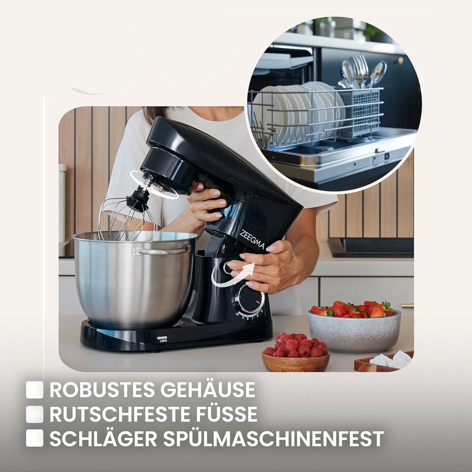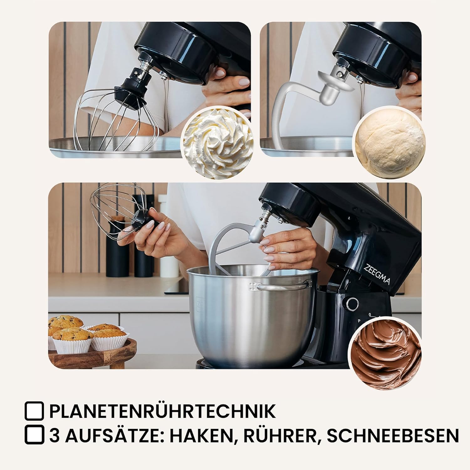 With the Zeegma Planeet Easy, cooking becomes pure pleasure. This planetary food processor combines performance, safety and style and makes baking and cooking easier and more successful than ever