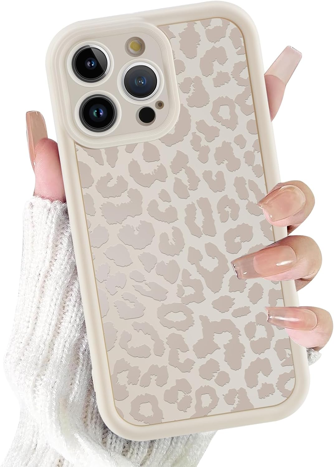 ZhuoFan Калъф за мобилен телефон за iPhone 13 Pro 6.1 инча, естетичен леопардов модел, бял дизайн, матов защитен калъф, защита на камерата, ултра мек силиконов тънък TPU калъф, удароустойчив, устойчив на надраскване