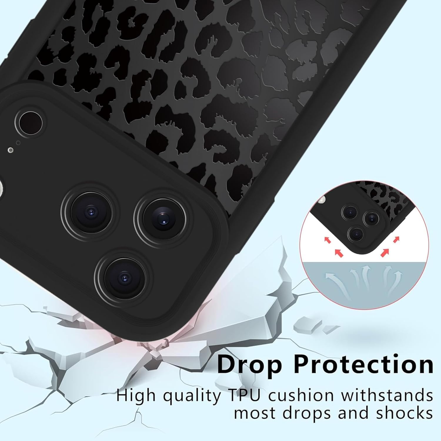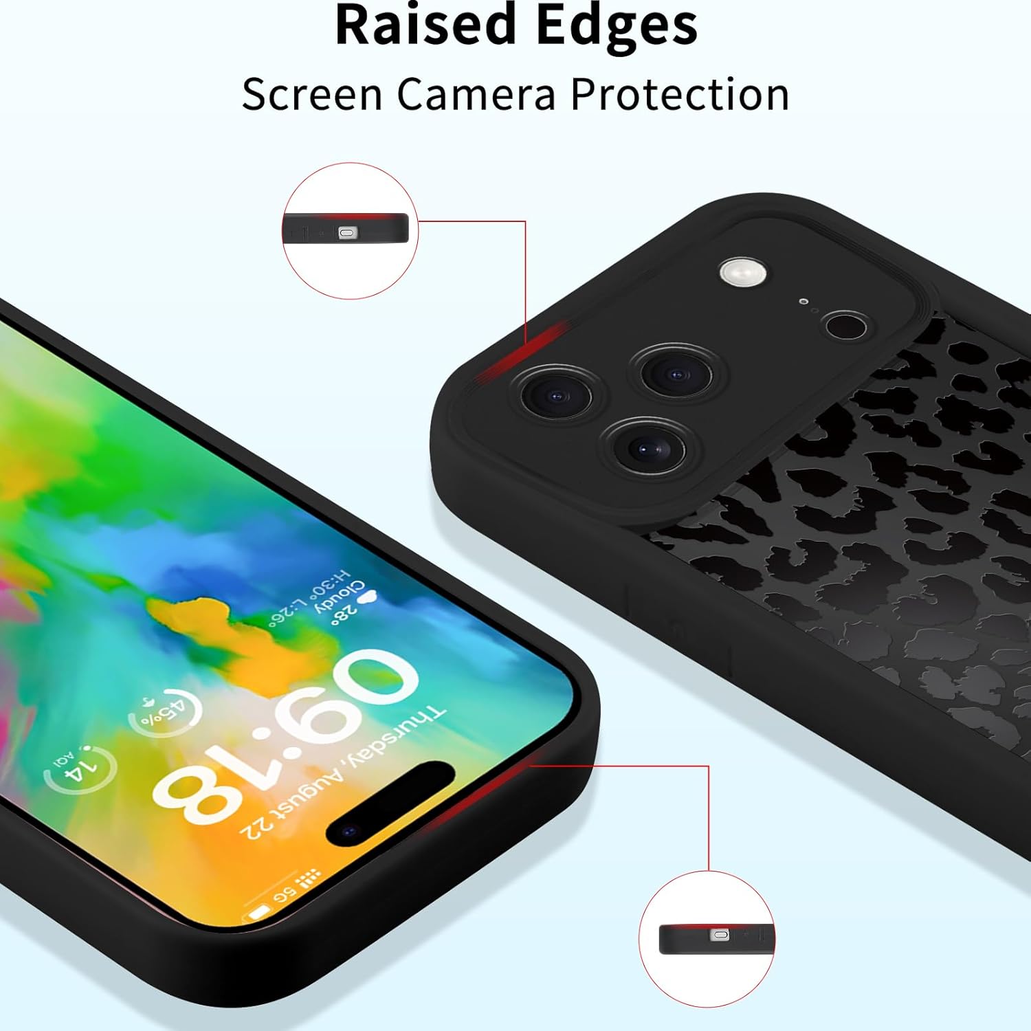 ZhuoFan Калъф за мобилен телефон за iPhone Pro 6.3 инча, естетичен леопардов дизайн, сладък модел, черен матов, за момичета и жени, защитен калъф, мек силиконов, тънък TPU калъф, удароустойчив, защита на камерата