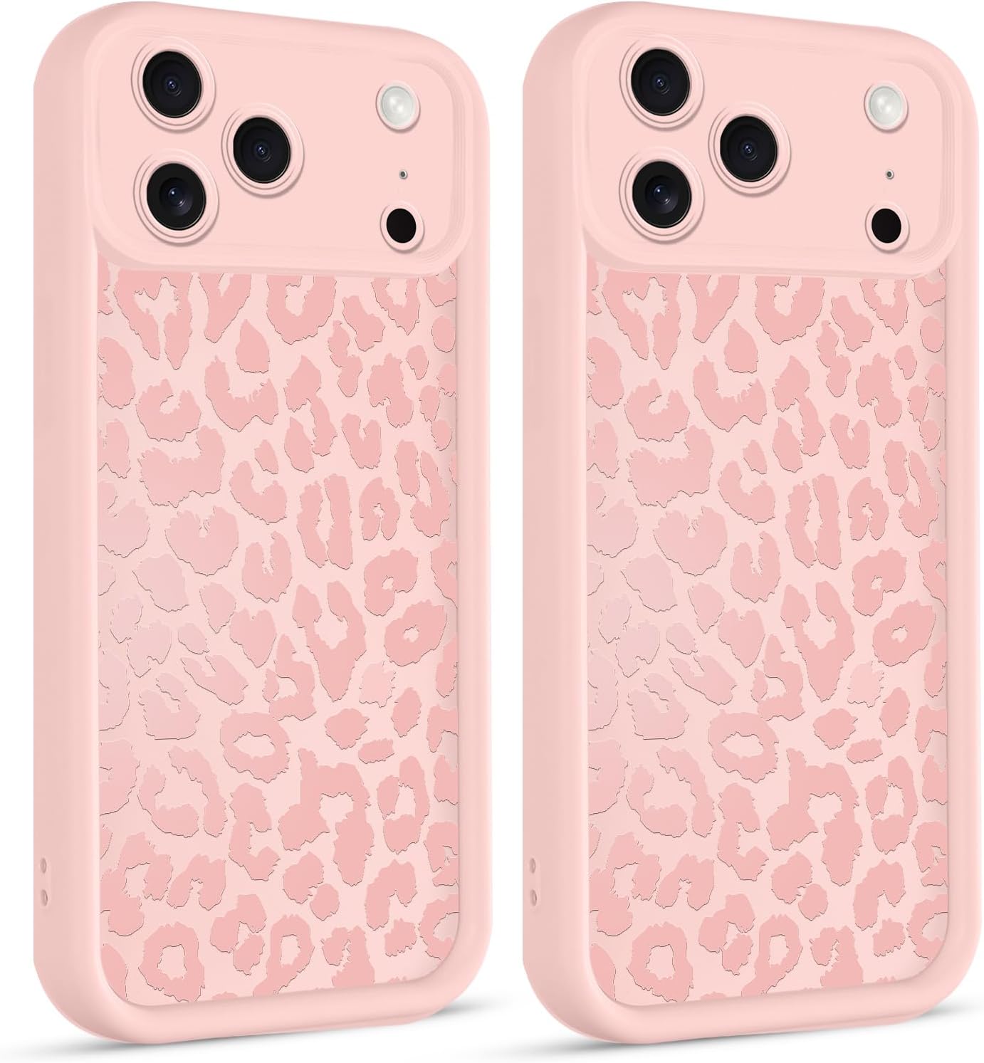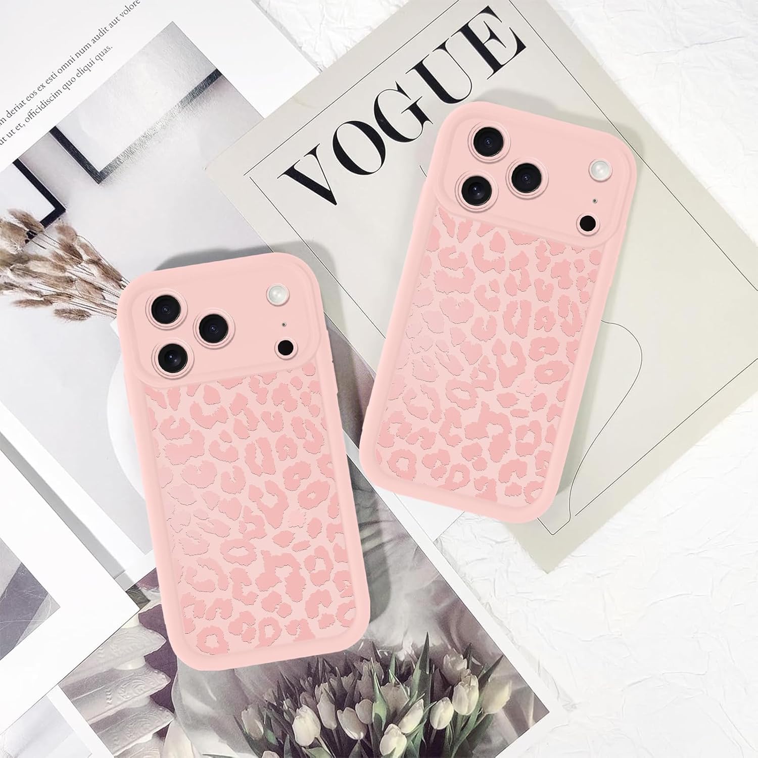 ZhuoFan Калъф за мобилен телефон за iPhone Pro 6.3 инча, естетичен леопардов дизайн, сладък модел, розов, матов, за момичета и жени, защитен калъф, мек силиконов, тънък TPU калъф, удароустойчив, защита на камерата