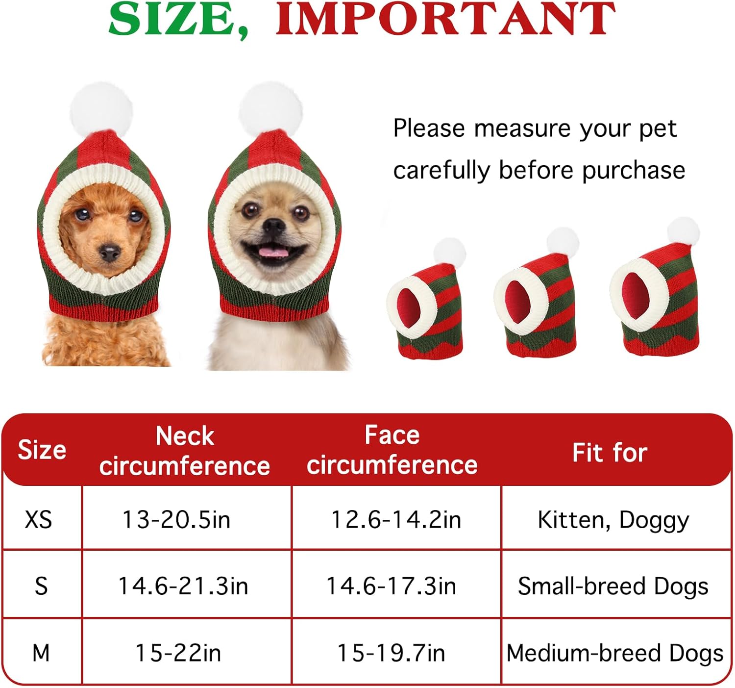 Не, но коледната шапка Pawaboo е еластична и има три размера, от които да избирате за котки и кучета от различни видове.