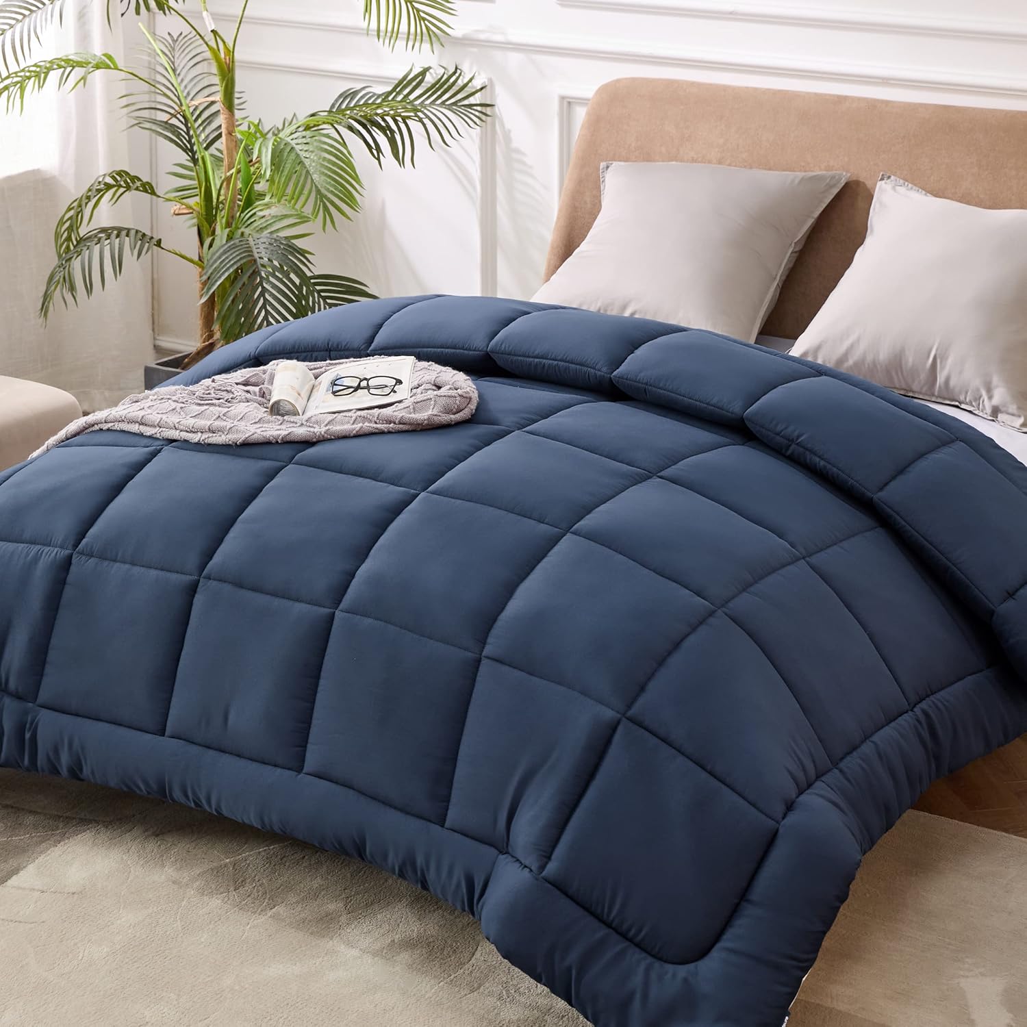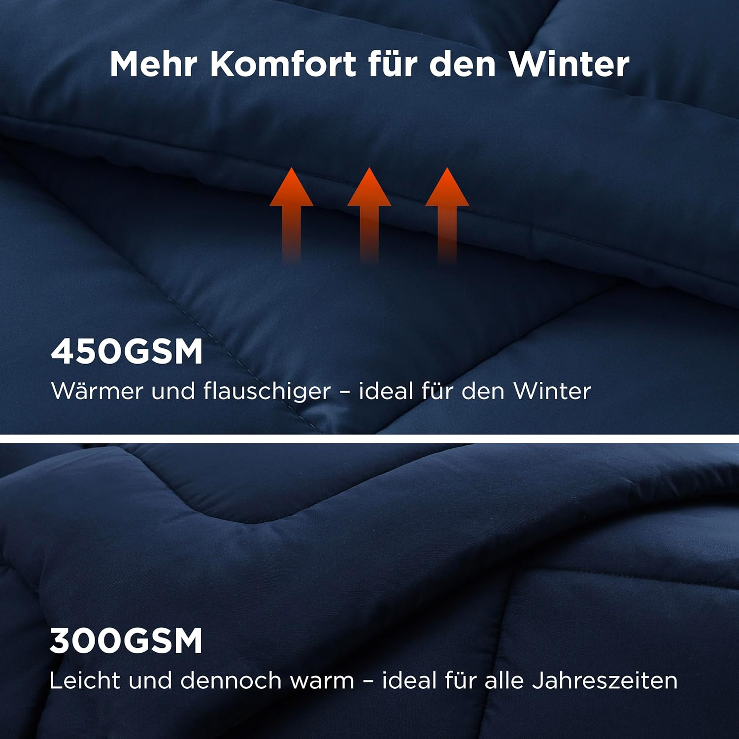 Насладете се на спокоен сън и се чувствайте комфортно през целия сезон с одеялото Bedsure 4 Seasons. Нашето одеяло е декорирано с красиви шарки във формата на кутия и ще добави лукс към вашата спалня на хотелско ниво. Одеялото е завършено с зашити шевове тип „кутия“ и предпазва пълнежа от хлъзгане, за да осигури равномерно покритие и топлина всяка вечер. Универсално се използва като две отделни завивки или като зимно одеяло. Одеялото от 100% микрофибър е пълнено с пълнеж от 300 г/м² и 150 г/м² и е отлична алтернатива на конвенционалните пухени завивки за хора с чувствителност към гъши или патешки пух. 8 копчета мигновено комбинират двете единични завивки в дебело, уютно одеяло, за да оцелеете през студената зима. Нашата класическа чисто бяла завивка ви кани в стая с изискана декорация и ще повярвате, че спите в облак по всяко време на годината.