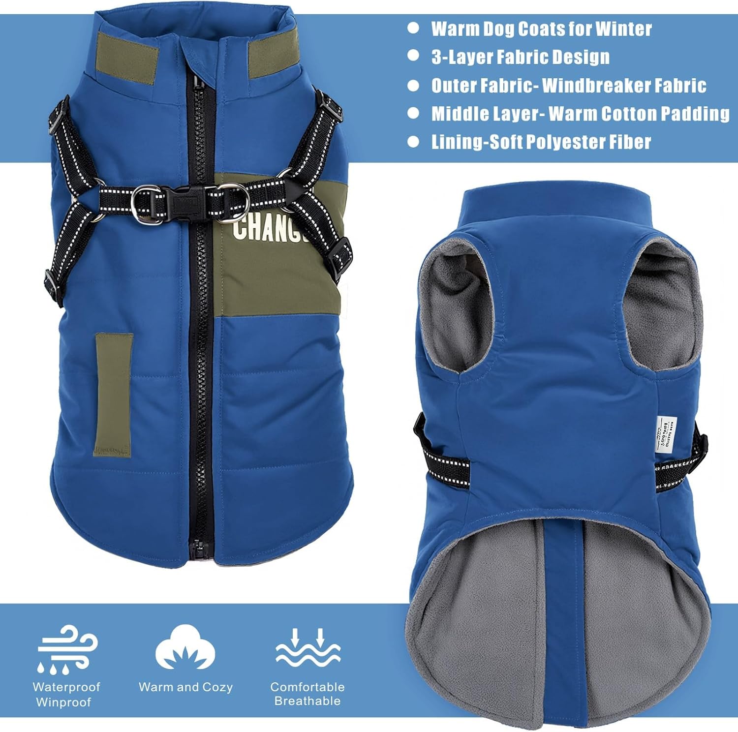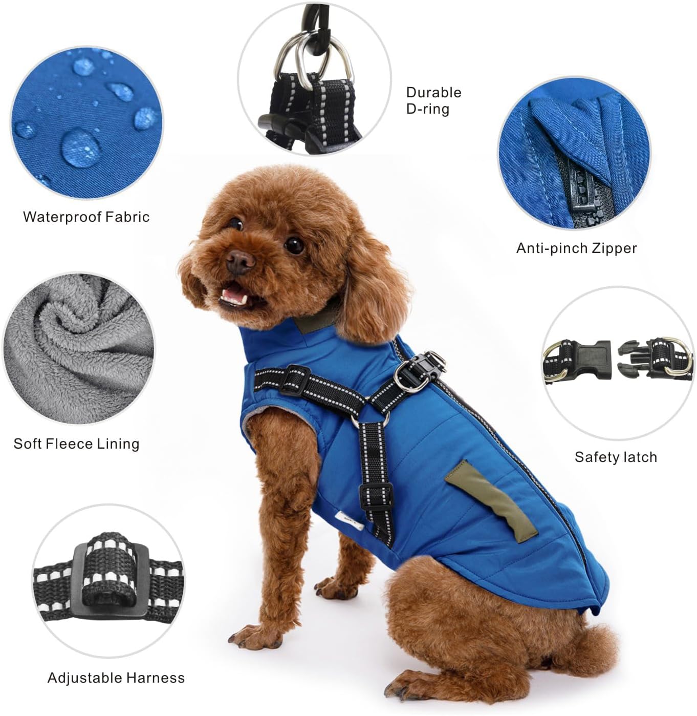 Зимни якета за кучета, топли палта за кучета, светлоотразителни дрехи за кучета, водоустойчива жилетка за кученца за студено време с нагръдник за малки и средни кучета