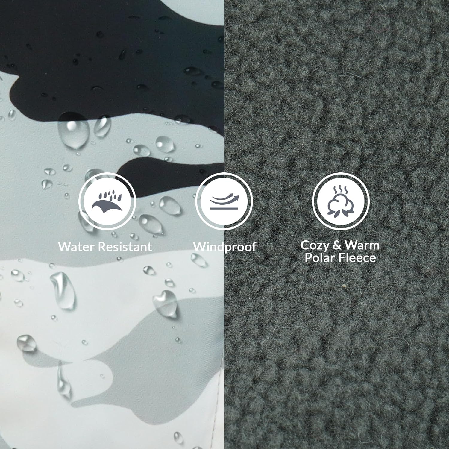 Топло и водоустойчиво: Зимното яке за кучета е изработено от водоотблъскващ външен материал и вътрешен слой от полар и поддържа вашите домашни любимци сухи и топли. Кожена яка - Водоустойчивият зимен дизайн на яке за кучета със супер топла поларена яка за врата, която може да се регулира с връзка за стягане и може да се настройва и сваля, ако е необходимо. Светлоотразителни ленти - Топлият жилет за кучета е ушит със светлоотразителни ленти, за да направи кучето ви по-видимо и безопасно през нощта. Лесно обличане и сваляне - Регулируемата катарама на поларното яке за кучета позволява бързо фиксиране, което може да се регулира, за да приляга по-добре около областта на гърдите. Отвор за каишка - Има скрит отвор за каишка, където каишката за куче може да се прикрепи към якето.