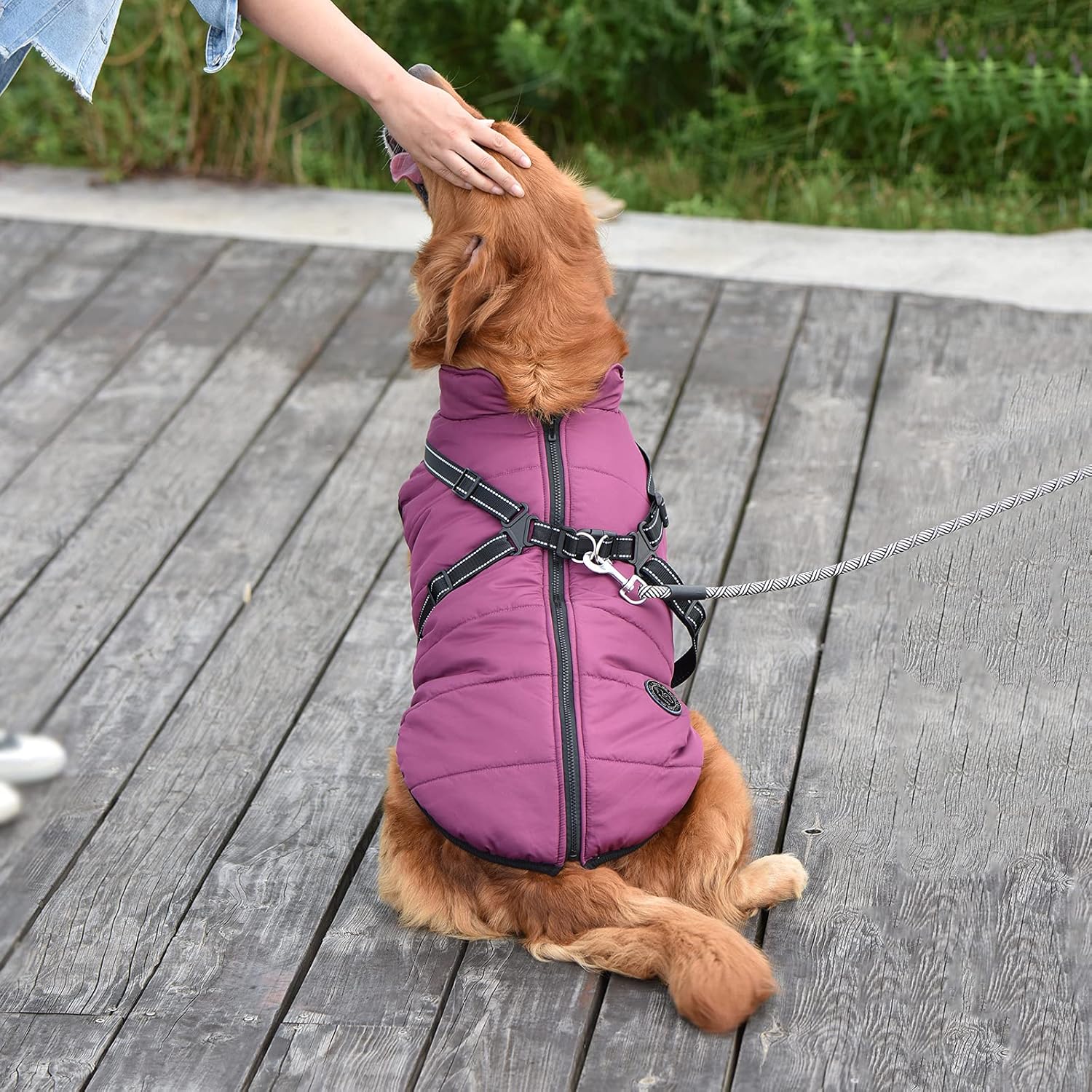 Зимно кучешко яке, кучешко палто, кучешки пуловер, ски костюм за домашни любимци, без ръкави с памучна подплата и презрамка за гърди, лилаво, 4XL