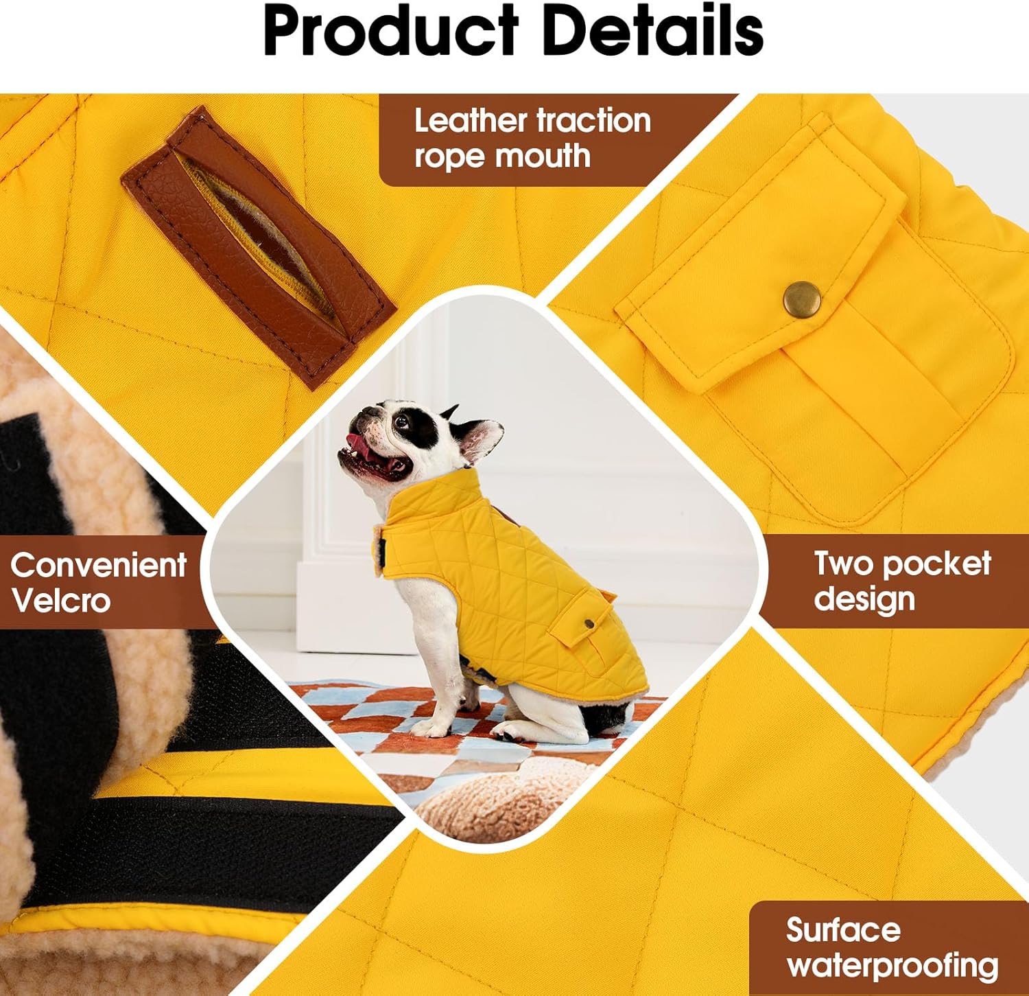 Студено е, домашните любимци искат да играят навън, но също така им е студено и не са активни, понякога дори треперят от студ. Търсите ли дебела дреха, която да предпази домашните ви любимци от вятър и студ? Това зимно палто Citetole е предназначено за кучета, за да им е топло и удобно; дебело, но леко, не пречи на движенията на кучетата; удобно и ветроустойчиво, кучетата могат да се топлят и да се задържат на сухо на открито в студено време. Красиво палто, добре изработено и елегантно, лесно за обличане и регулиране, лесно за пране в пералня и бързо съхнене, това зимно палто е идеален подарък за домашни любимци.