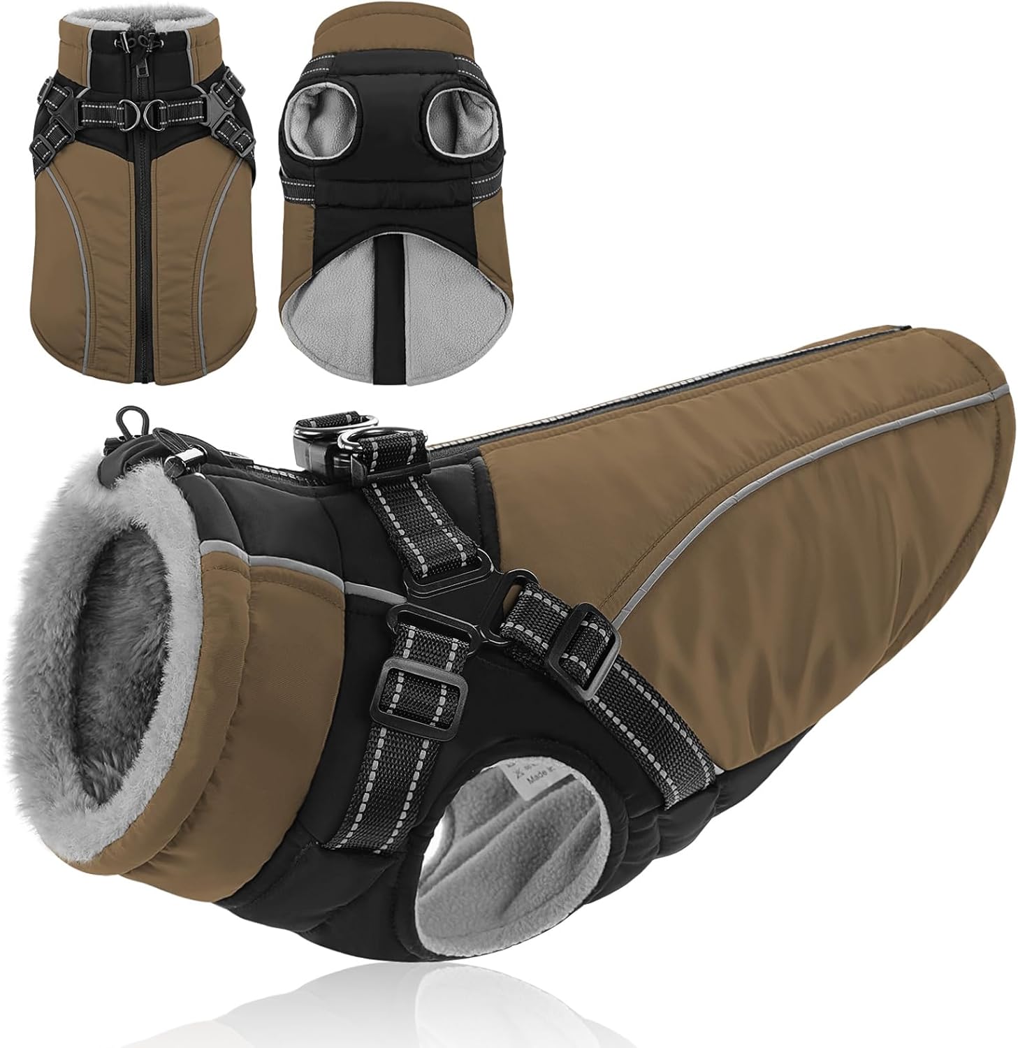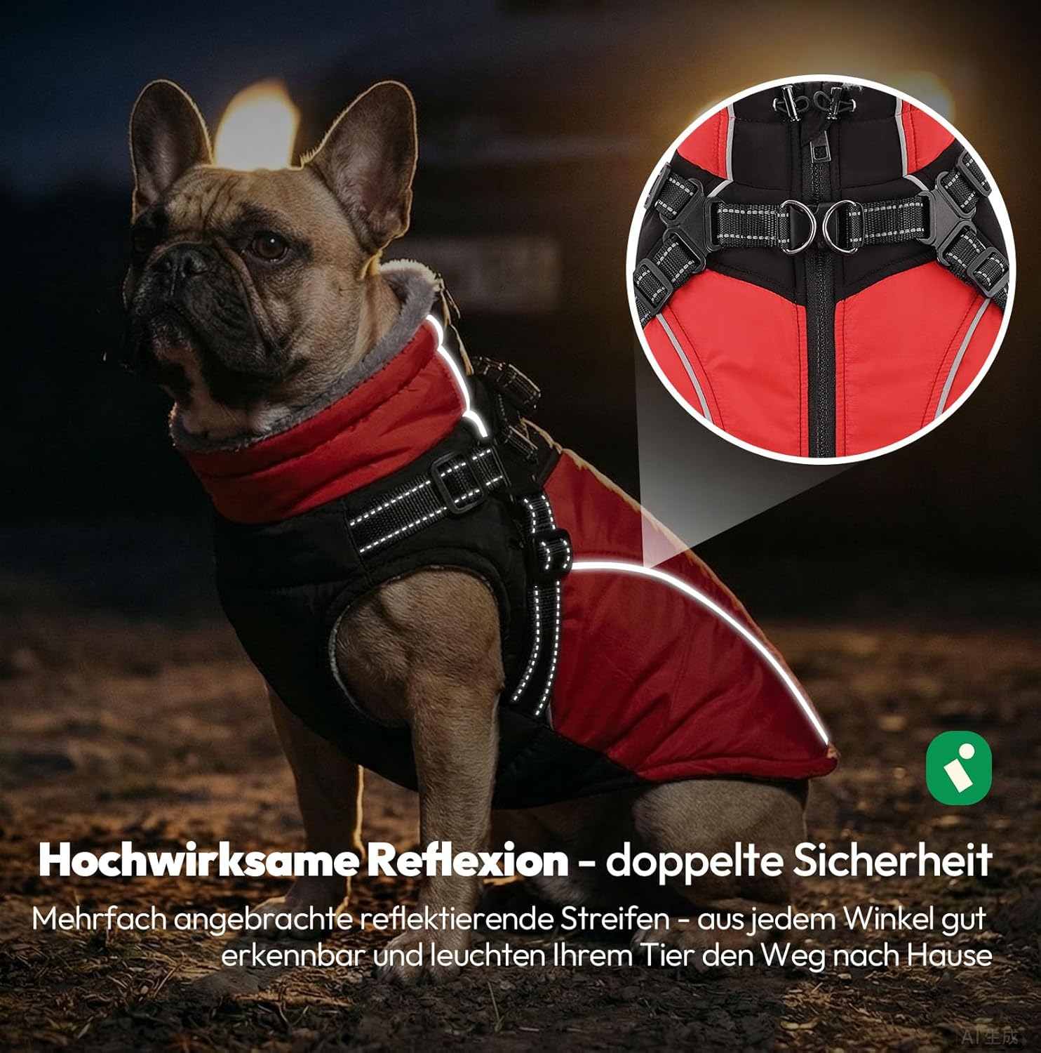• Практичен вграден нагръдник: палтото за кучета с нагръдник позволява лесно обличане и допълнителна безопасност по време на разходки. Идеално за кучета на открито.