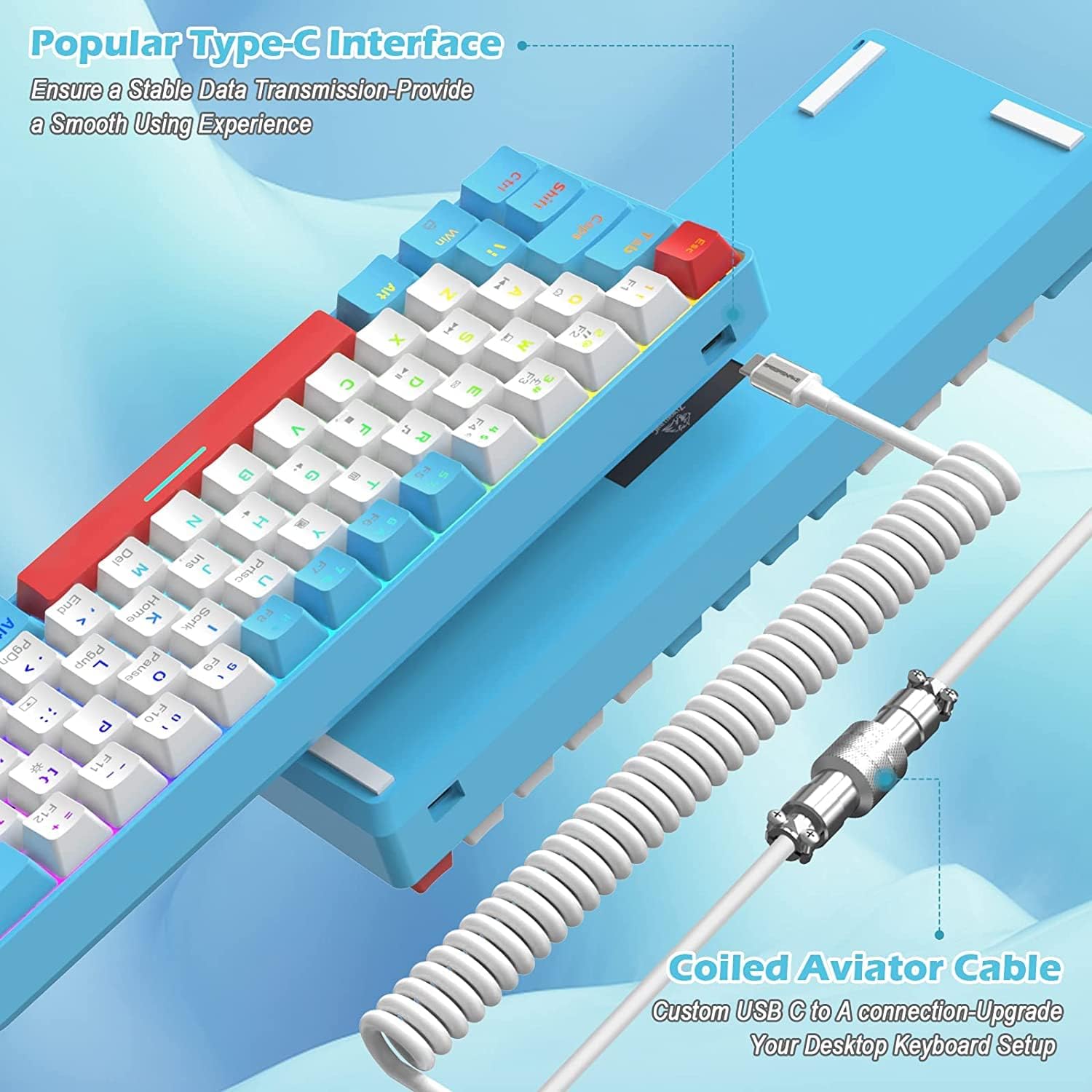 • Спирален USB C кабел за геймърска клавиатура: Този комплект клавиатура и мишка за игри има кабел за клавиатура с тонално навита клавиатура. USB C кабел за механична геймърска клавиатура с двоен ръкав и подвижен метален авиационен конектор, с nano TPU, предназначен за професионални геймъри и ефективна работа. Кабелът Type-C към USB-A поддържа безопасно и бързо зареждане и скорост на синхронизиране на данни.
