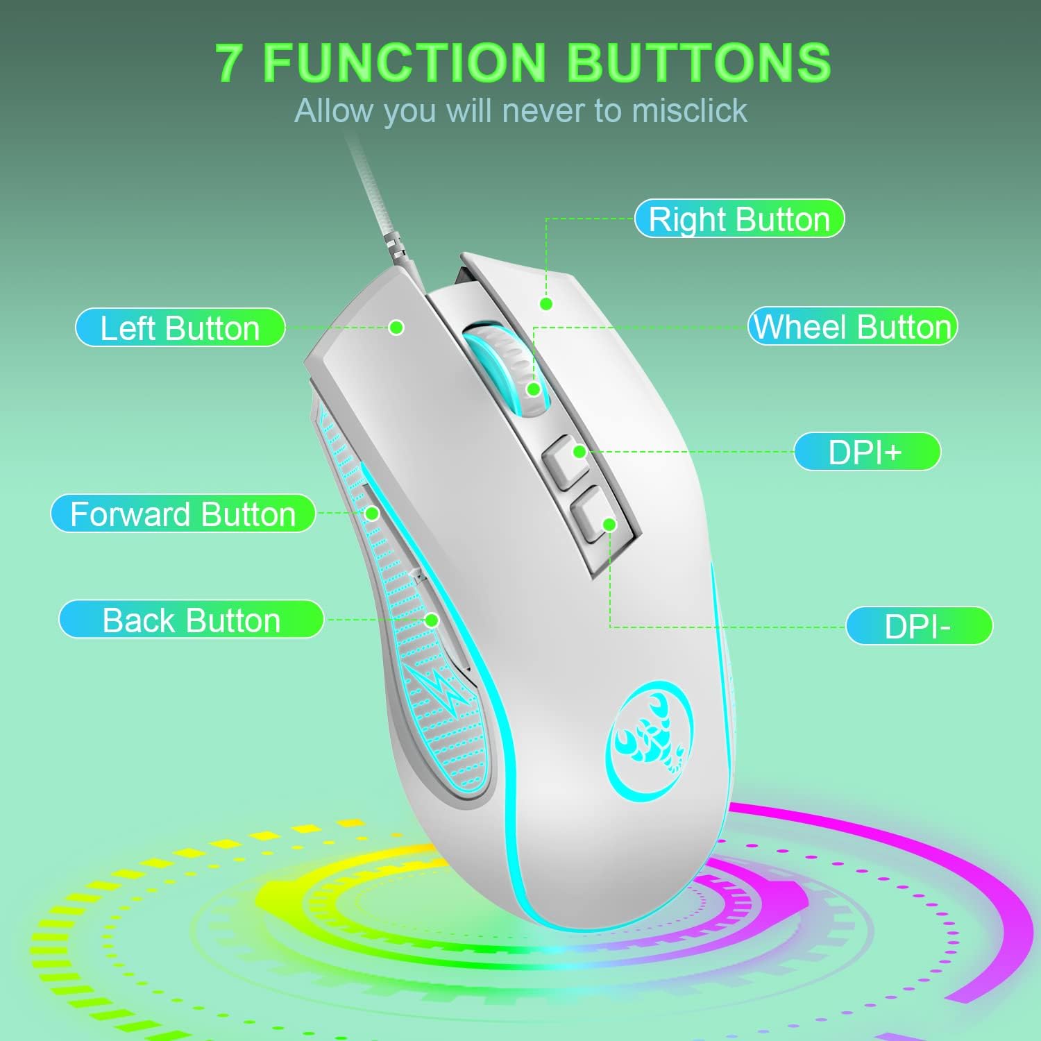 • 4 регулируеми DPI и гъвкави бутони: регулируем диапазон на скоростта на DPI: 1200-1800-2400-3600, лесно и удобно управление на скоростта. Plug and play, няма нужда от изтегляне на други драйвери. 7 бутона, ляв/десен/среден/напред/назад/DPI +/DPI. Регулируема чувствителност за игри и ежедневни бизнес нужди. Лесно настройване, за да се адаптира мигновено скоростта на мишката към различните игри.