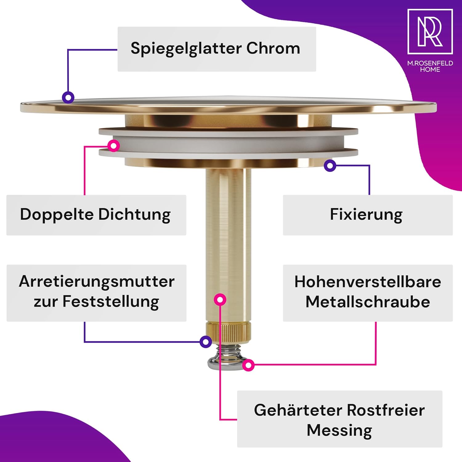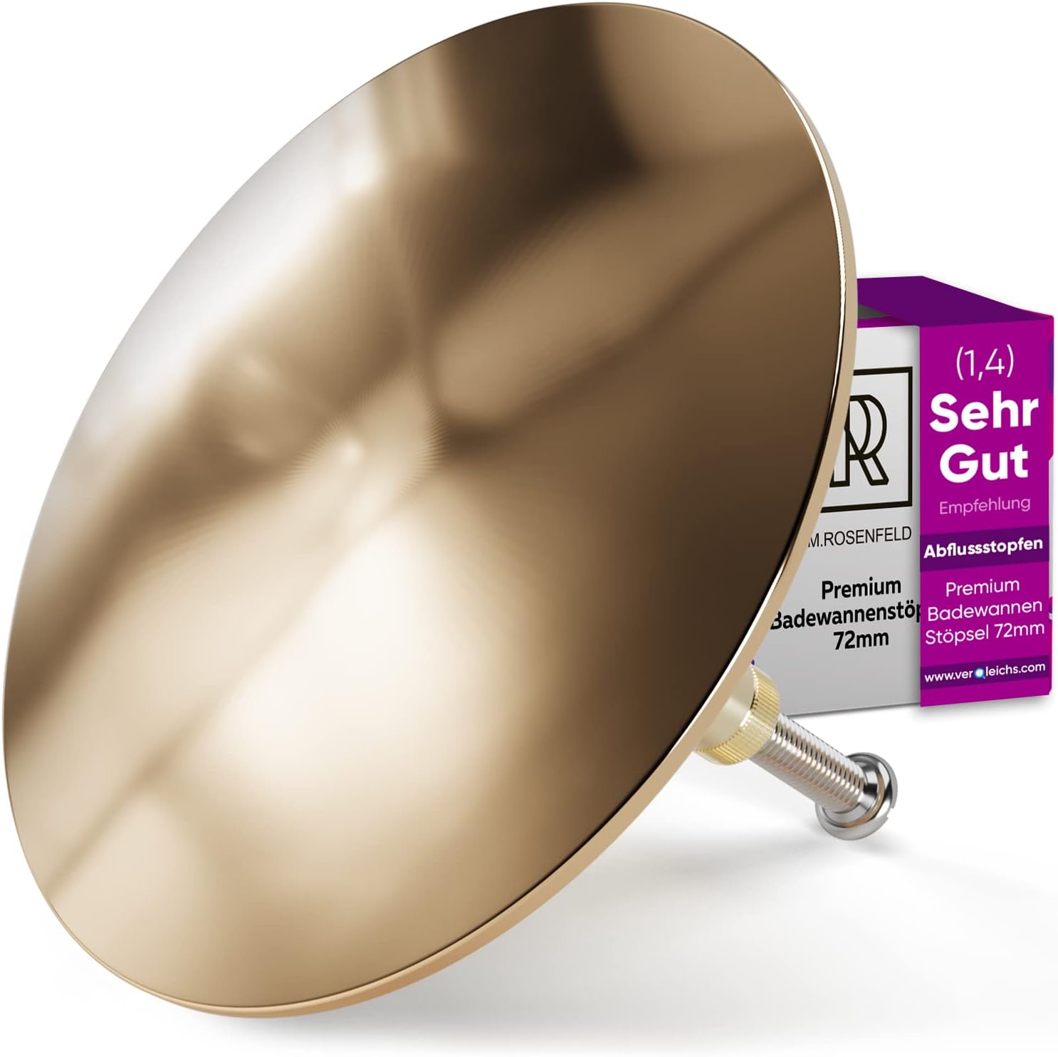 Златен тапа за вана с диаметър 72 – Златен тапа за вана, златен месинг с двойно уплътнение – Неръждаема тапа за вана, аксесоари за баня