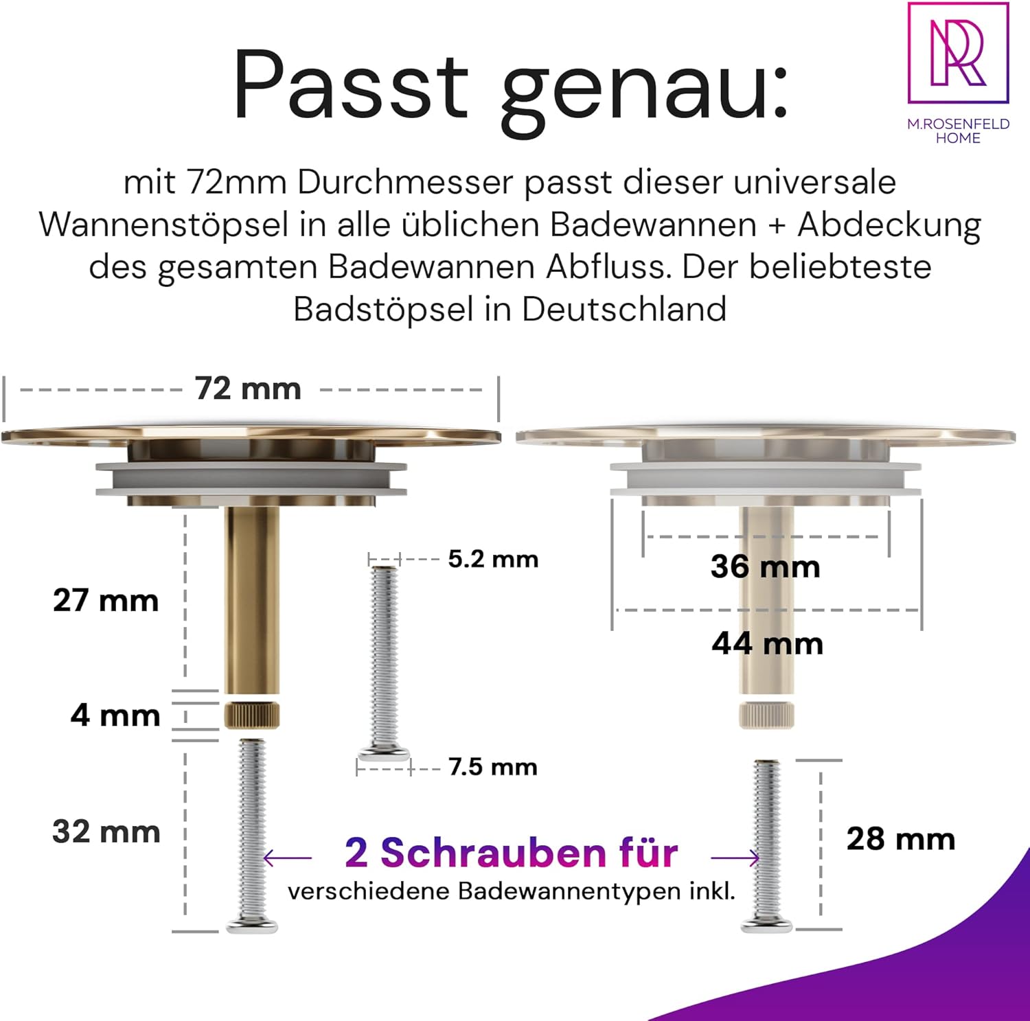 • Универсален размер Ø 72 мм: Тапата за вана е подходяща за всички стандартни вани – включително много специални вани – и надеждно покрива целия канал. Идеална е като резервна тапа.