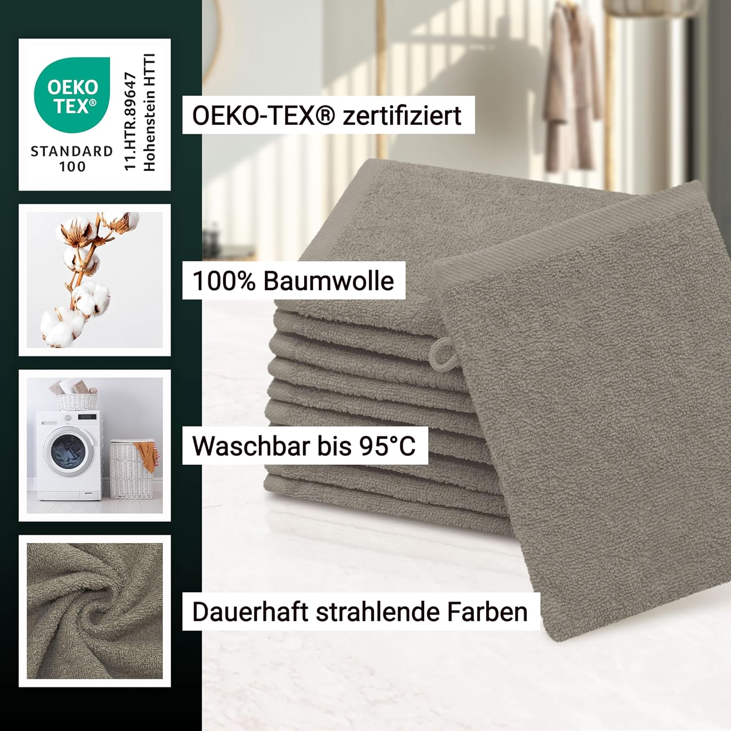 Индантреновият цвят гарантира на кърпите за гости най-високи стойности за устойчивост на цветовете и най-добра стабилност на цветовете, те могат да се перат до 95°C и дори са устойчиви на варене и хлор.