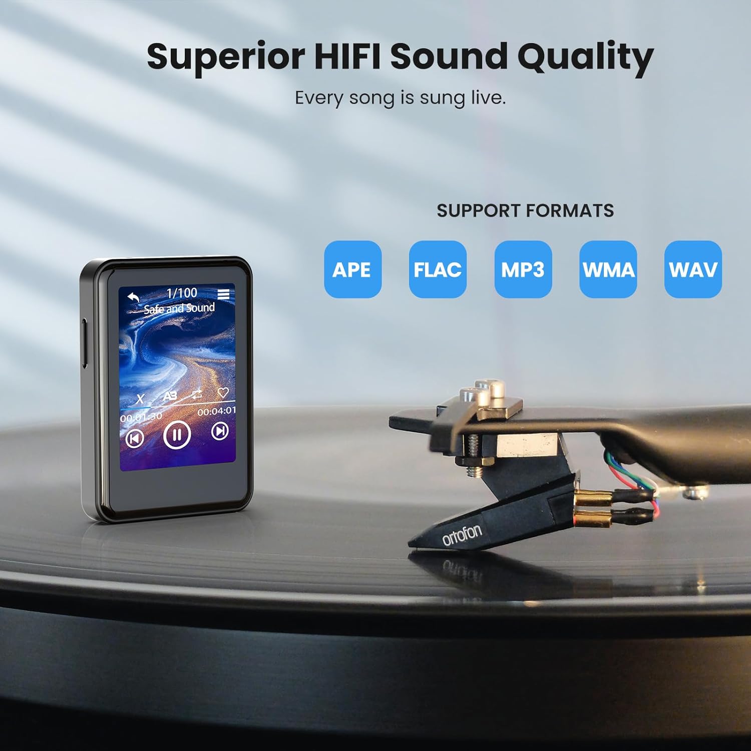• 128 GB голяма памет и Bluetooth 5.2: MP3 плейърът разполага с 128 GB голяма памет, което ви позволява да съхранявате повече музика. MP3 плейърът използва обновената технология Bluetooth 5.2. В сравнение с Bluetooth 5.1, той има по-голям обхват на предаване, по-бърза скорост на предаване, по-стабилен сигнал и пести повече енергия. Това позволява на MP3 плейъра да бъде по-съвместим с други устройства.