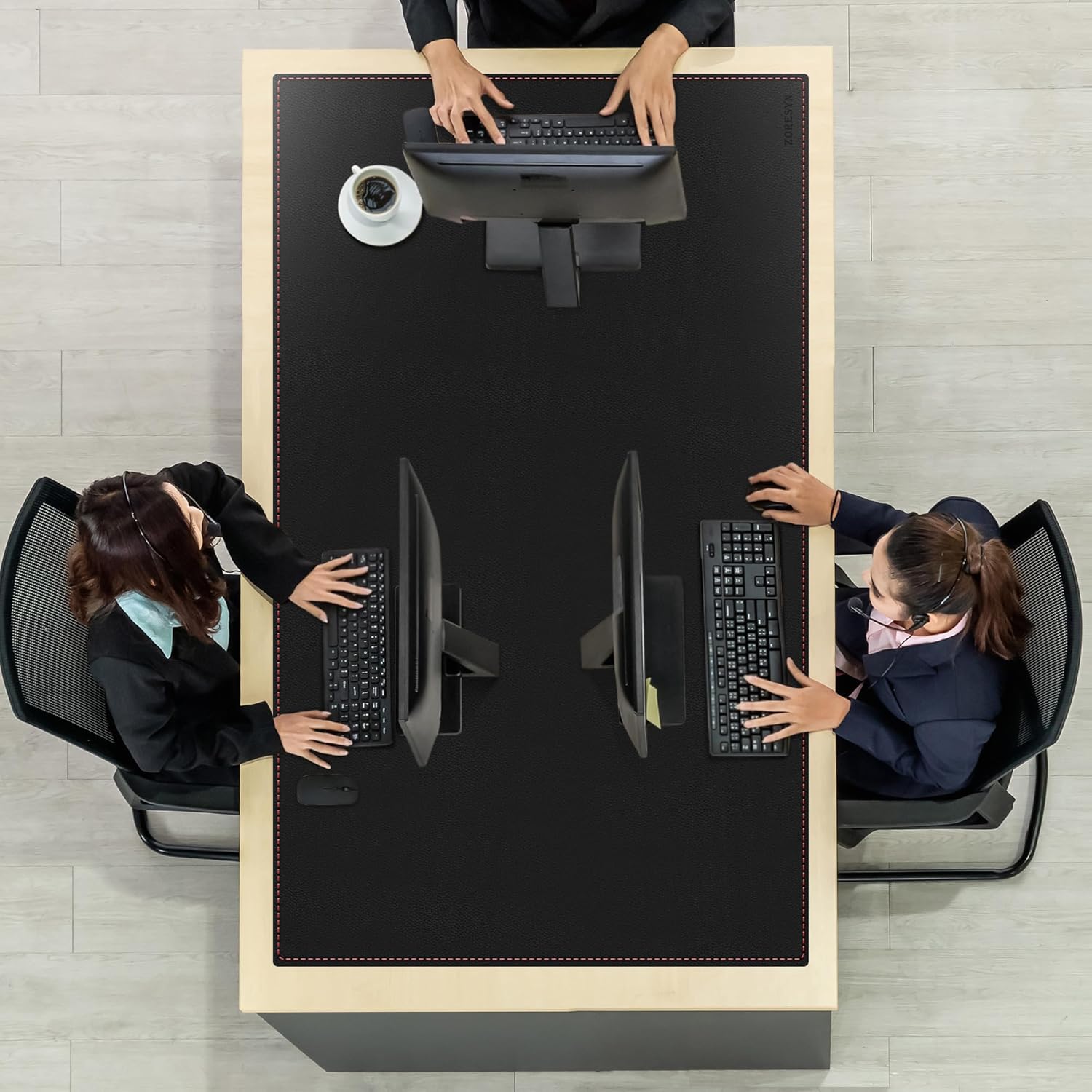 ZORESYN 150 x 90 см Подложка за бюро, големи размери, PU кожена подложка за мишка, протектор за маса, подложка за писане, подложка за геймърска мишка, подложка за бюро, идеална за офис и дом (черна)