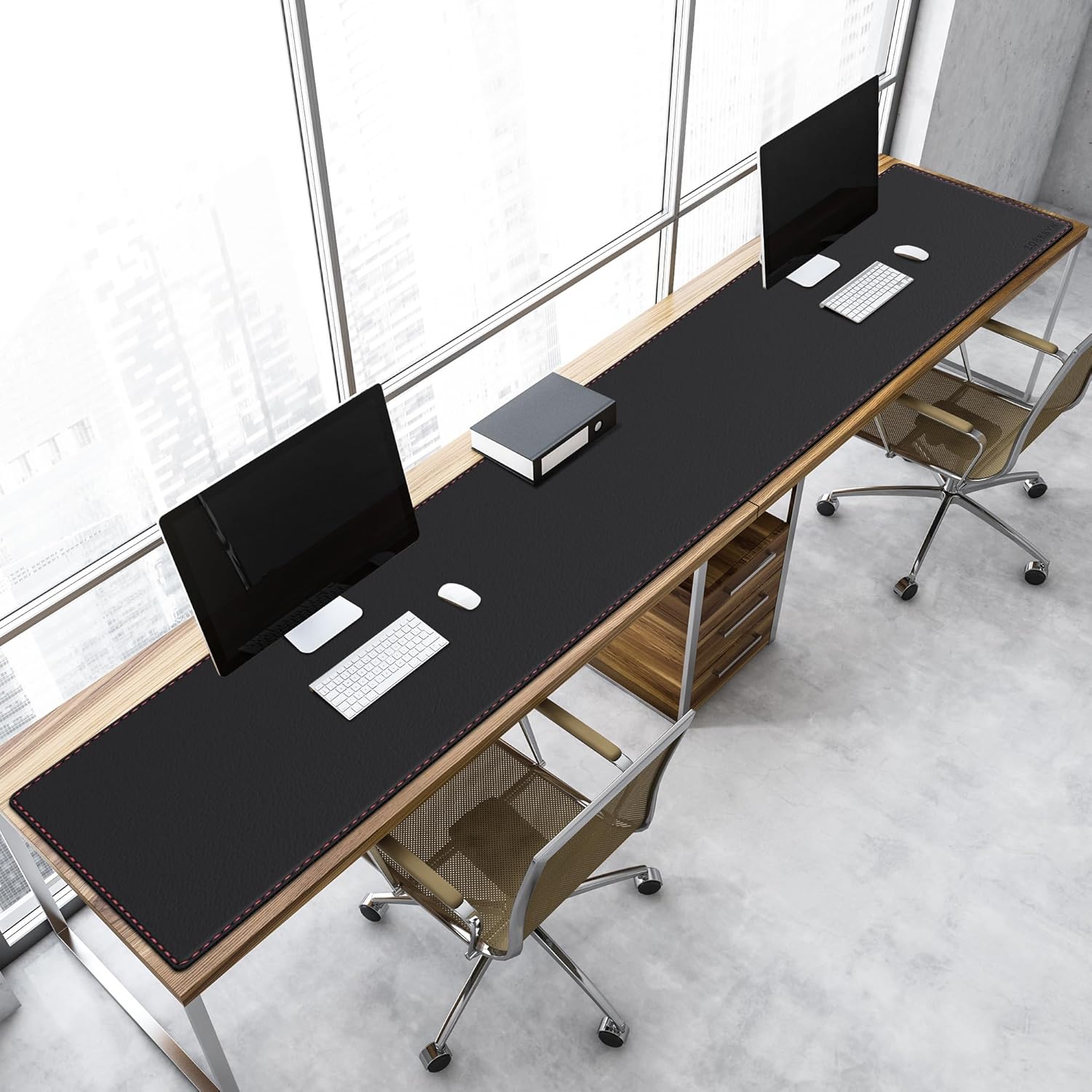 ZORESYN Черна подложка за бюро (200 x 40 см), Неплъзгаща се кухненска подложка от изкуствена кожа за бар плот, маса за хранене, бюро