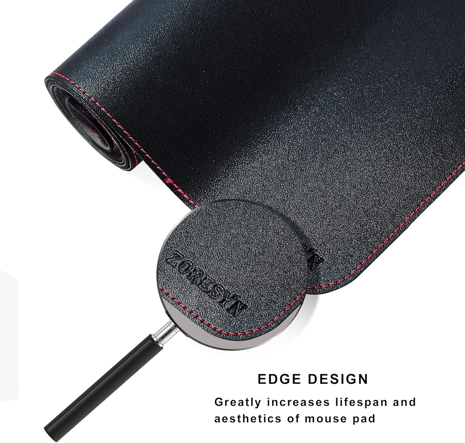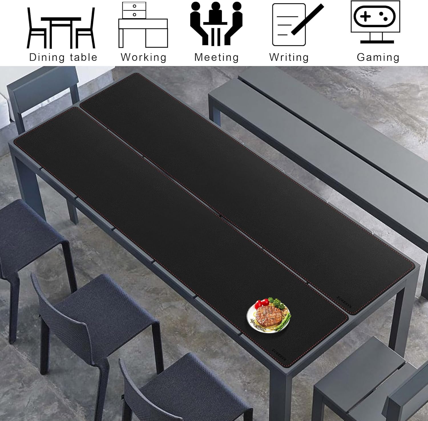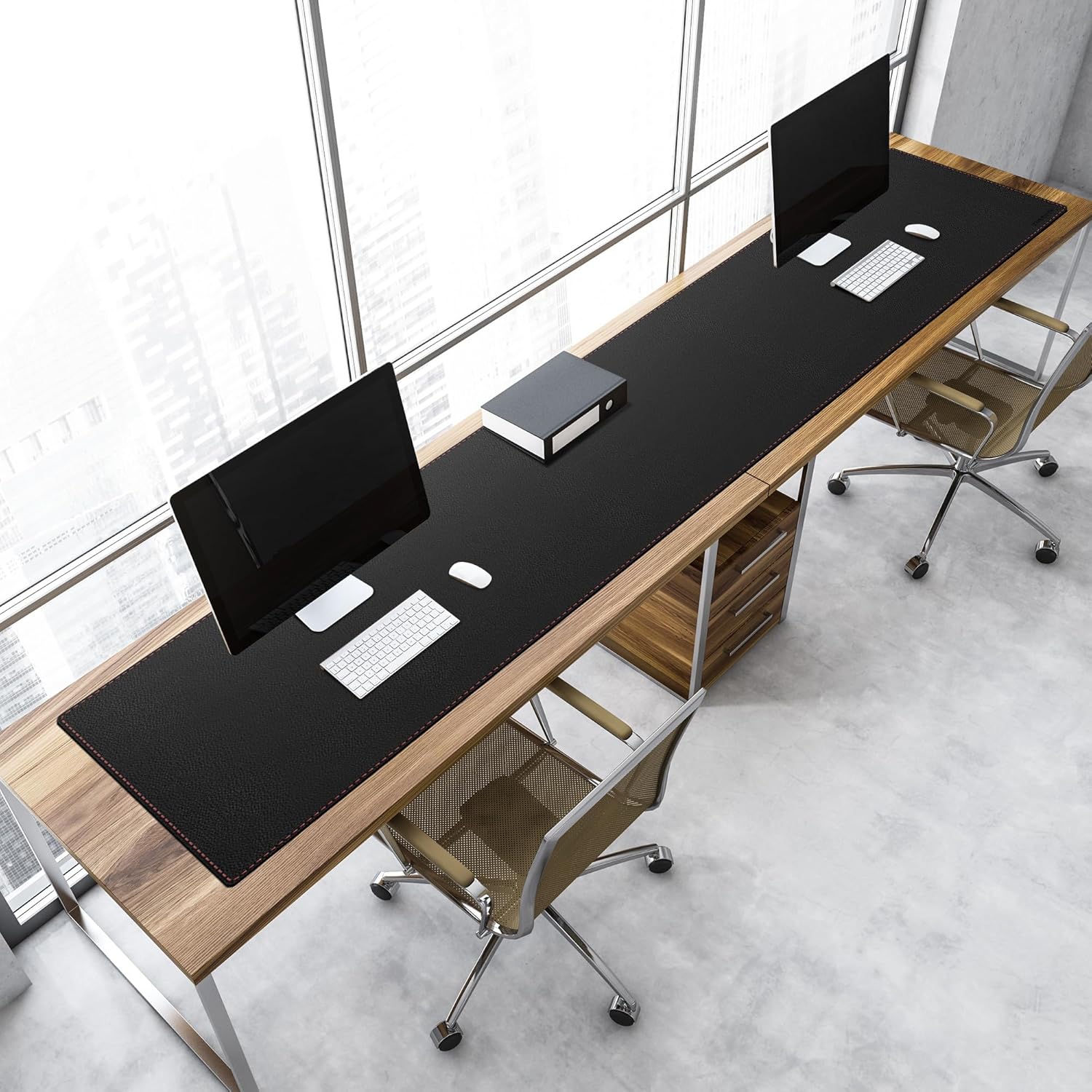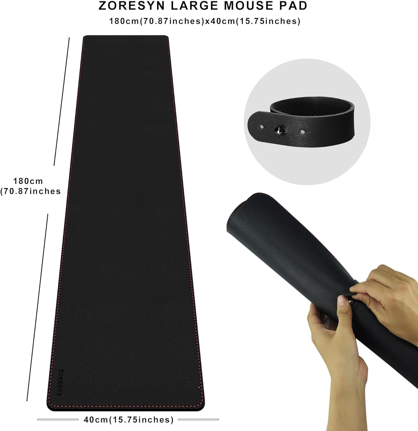 ZORESYN Черна подложка за бюро от изкуствена кожа 180 x 40 см - Неплъзгаща се подложка за мишка с шевове по краищата, издръжлива за дома и офиса