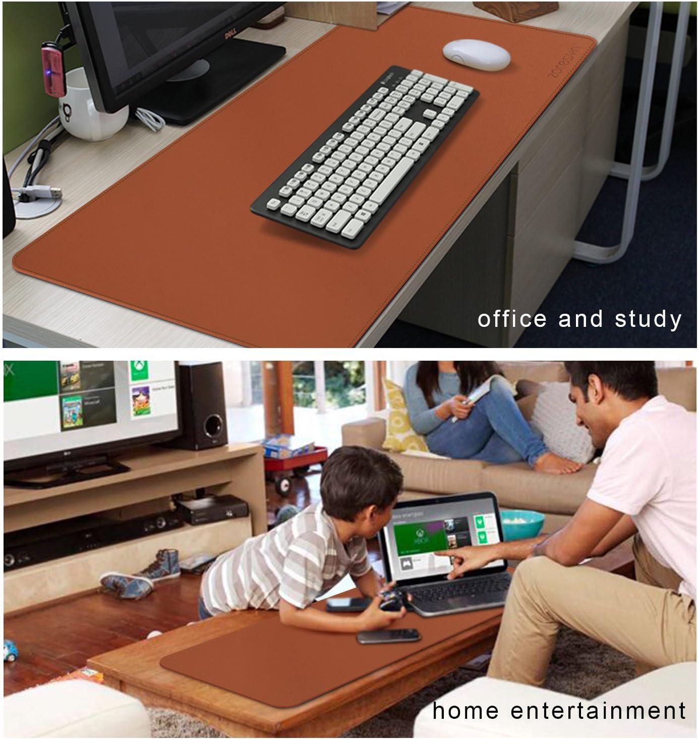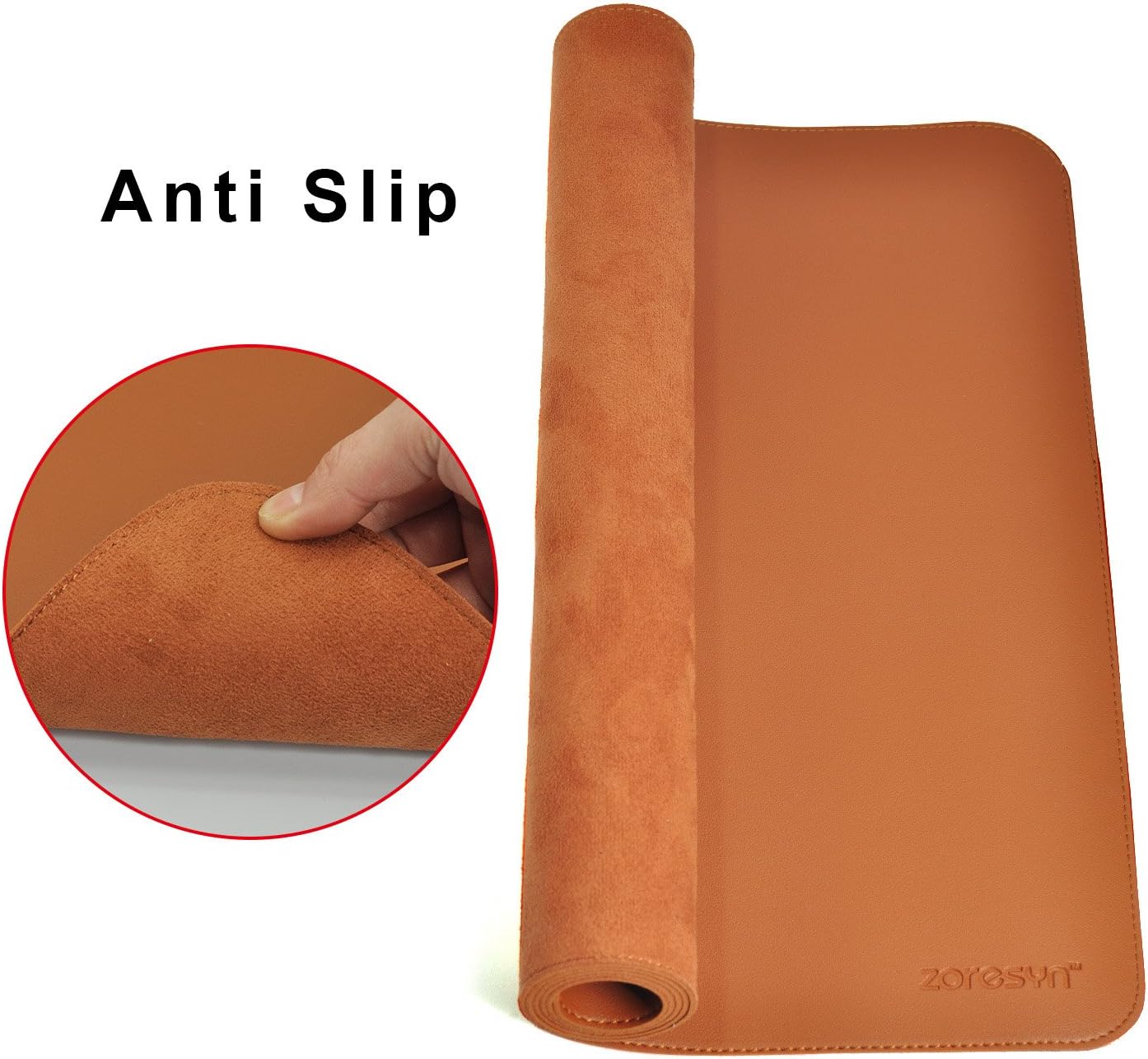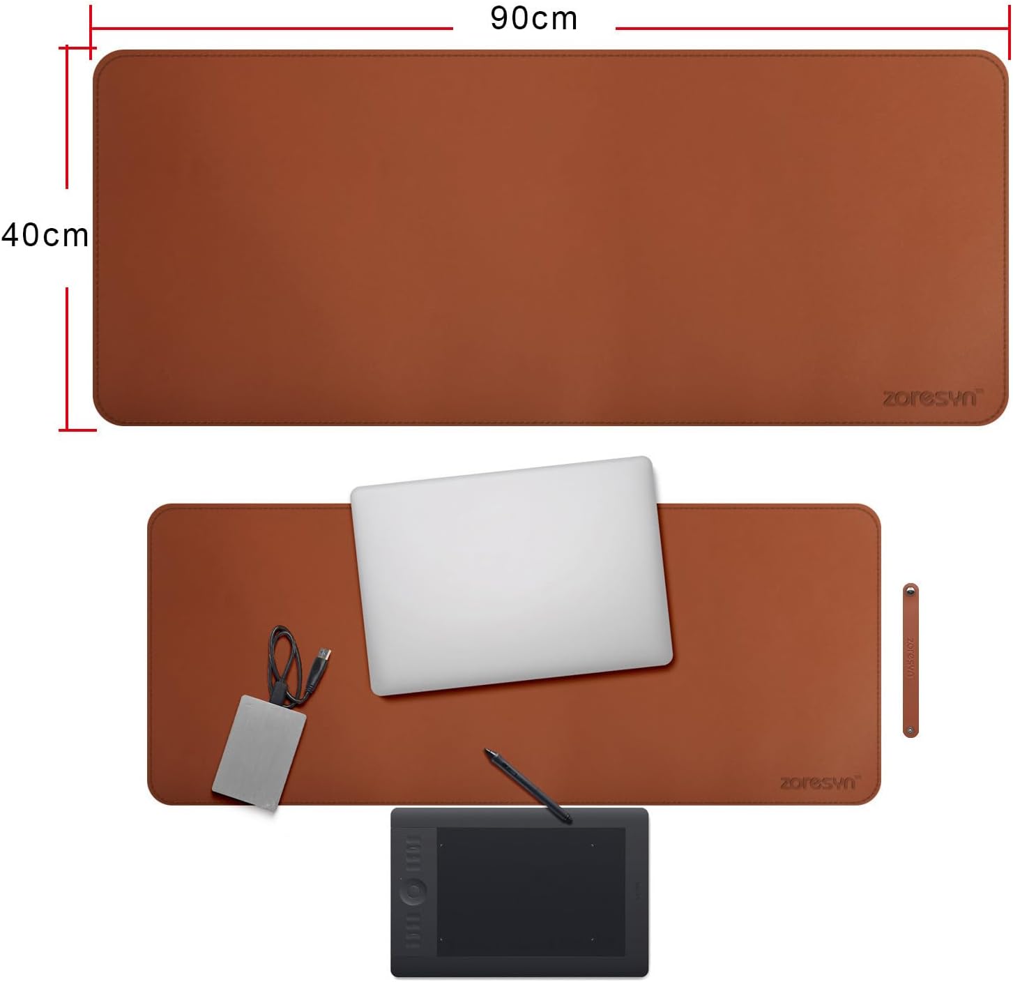 Zoresyn Голяма подложка за мишка от изкуствена кожа, подложка за бюро, големи подложки за клавиатура, удължена подложка за мишка 35.4"x15.7" за офис, домакинство, игри (светлокафява)