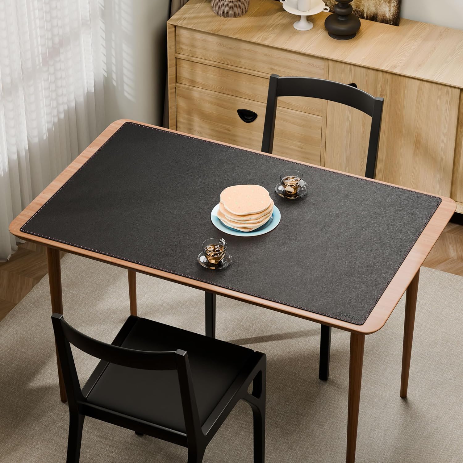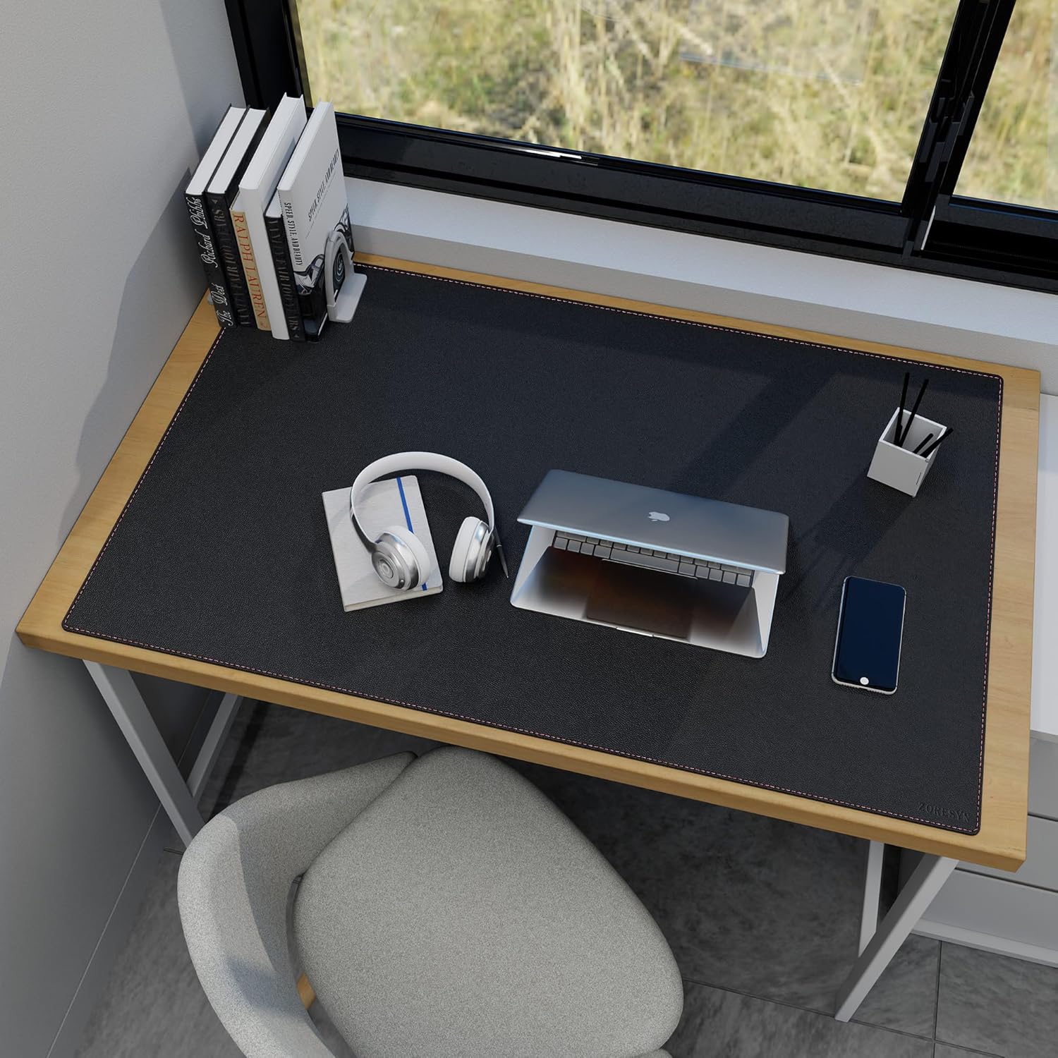 ZORESYN Подложка за бюро 110 x 70 см Черна XXL Неплъзгаща се подложка за бюро за офис, масичка за кафе, студио за маникюр, водоустойчива защитна подложка от PU кожа за домашен офис и домакинство