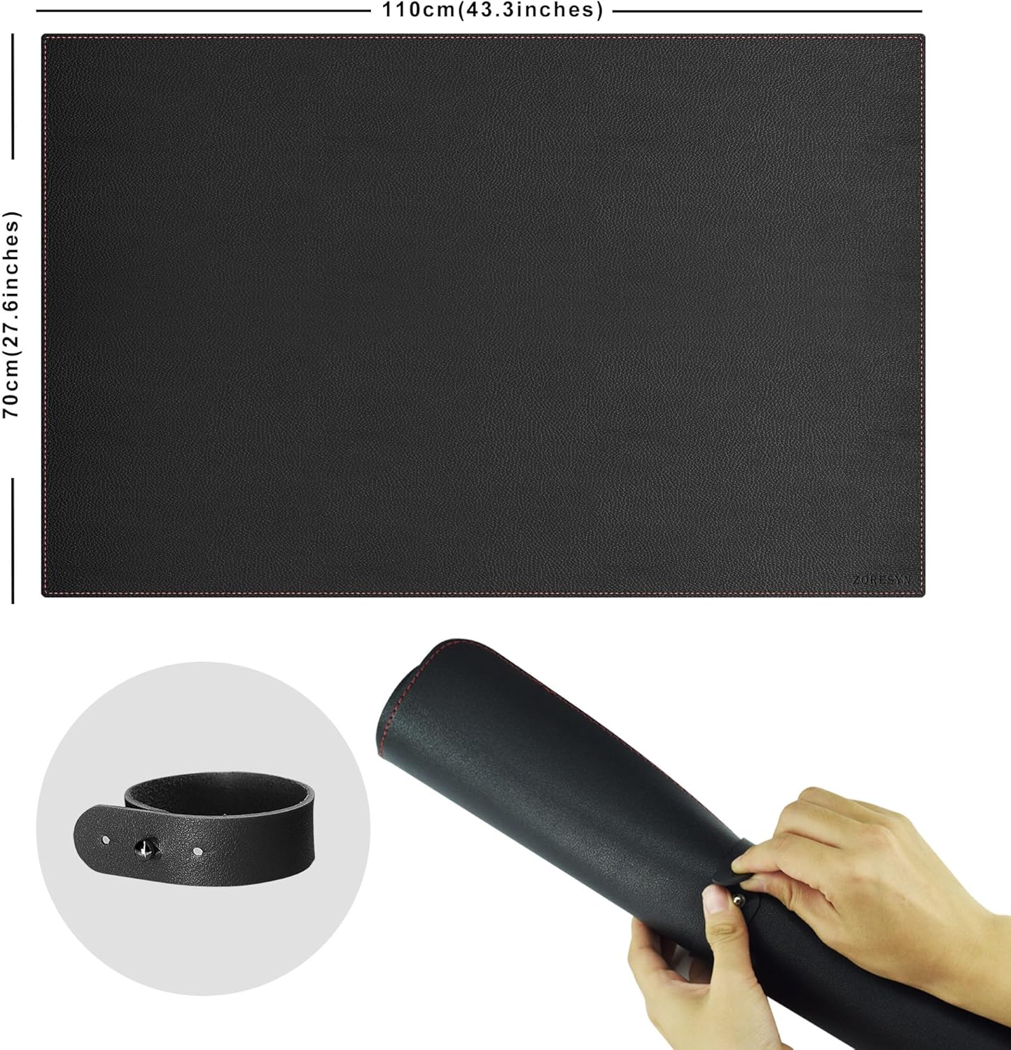 • Изключително широка постелка с размери 110 x 50 см покрива цялото бюро. Лесна за навиване с включена кожена каишка - идеална за пътуване или за пестене на място при съхранение.