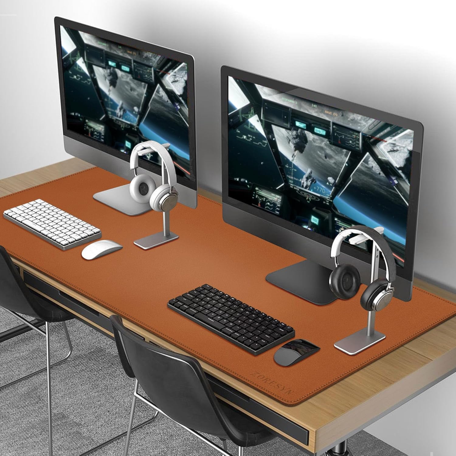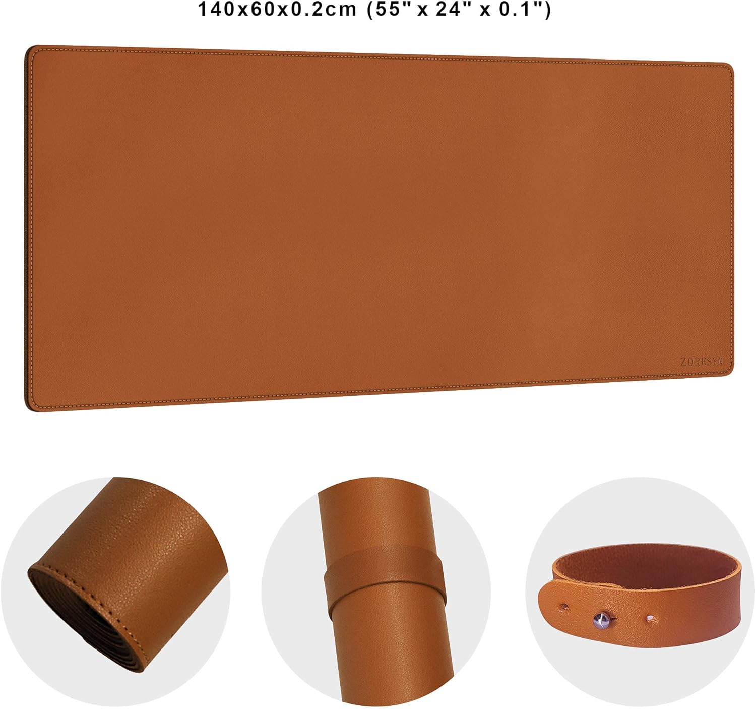 ZORESYN Подложка за бюро 140 x 60 см (кафява) - Висококачествена подложка за маса от изкуствена кожа с нехлъзгаща се долна страна за домашен офис и офис - Устойчив на износване дизайн на шевовете за издръжливост