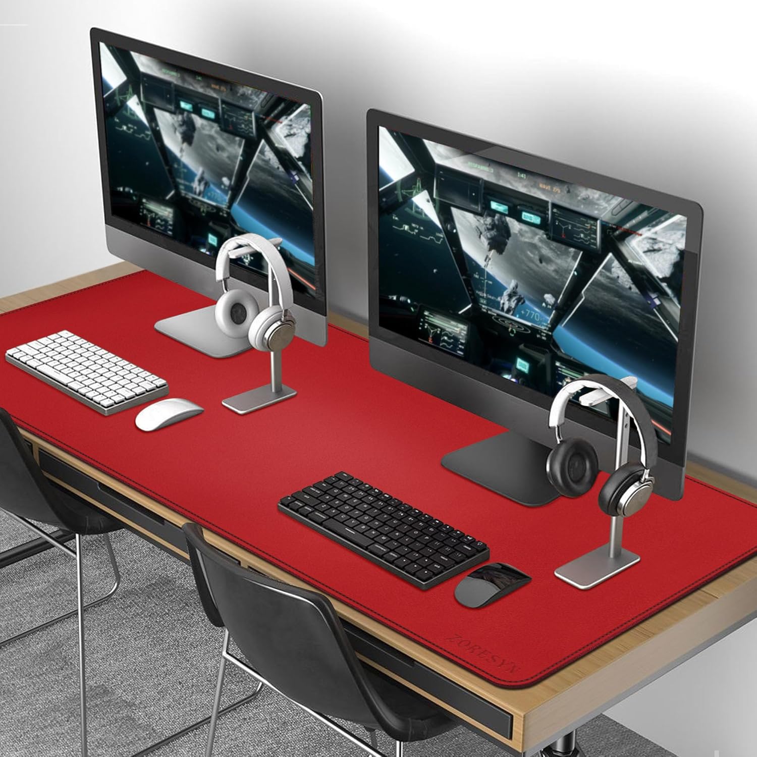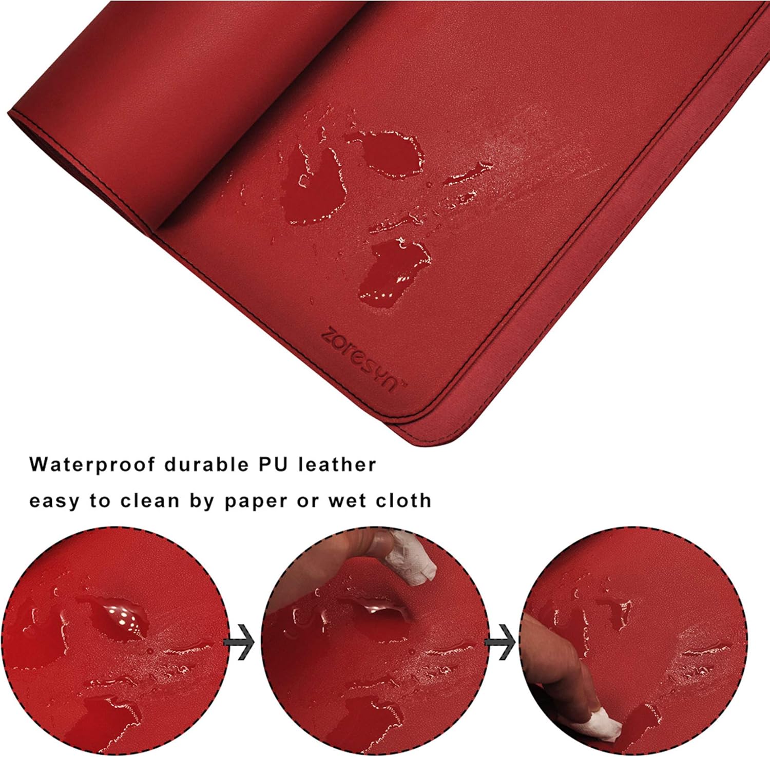 ZORESYN Подложка за бюро 160 x 60 см, червена - XXL, първокласна изкуствена кожа с неплъзгаща се долна страна, за домашен офис и офис - устойчив на износване дизайн с шевове, ергономична и издръжлива